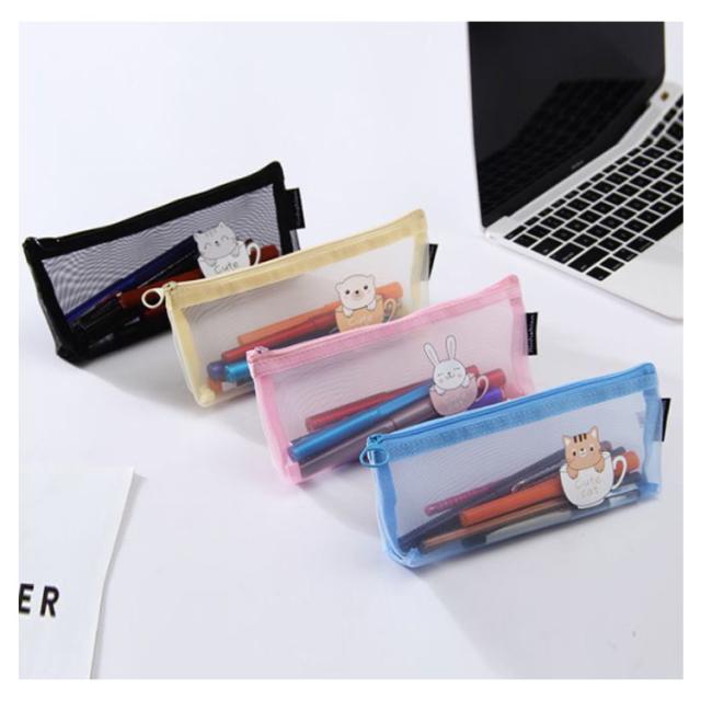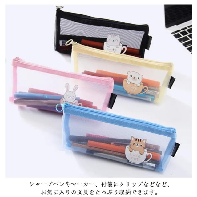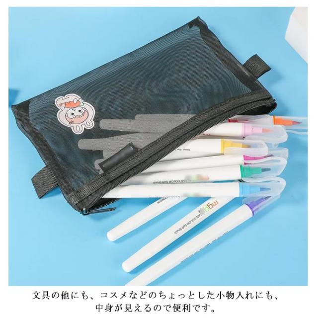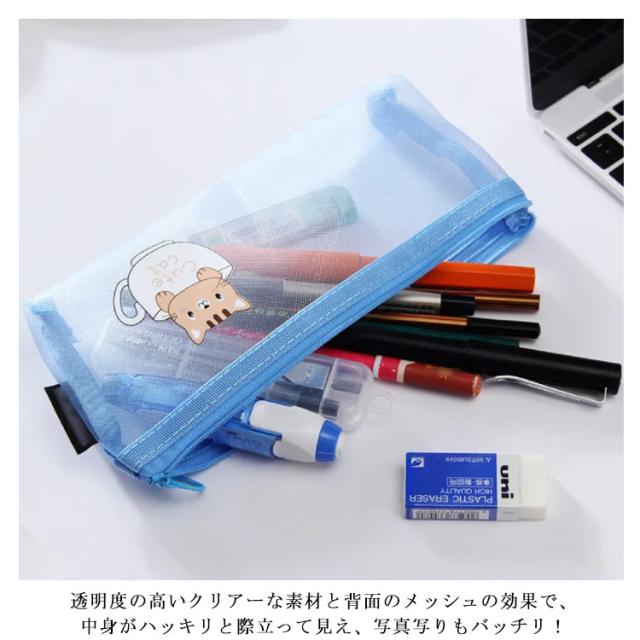 | 中身が見やすいクリアメッシュペンケース。 透明度の高いクリアーな素材と背面のメッシュの効果で、中身がハッキリと際立って見え、写真写りもバッチリ! シャープペンやマーカー、付箋にクリップなどなど、お気に入りの文具をたっぷり収納できます。 文具の他にも、コスメなどのちょっとした小物入れにも、中身が見えるので便利です。 | |