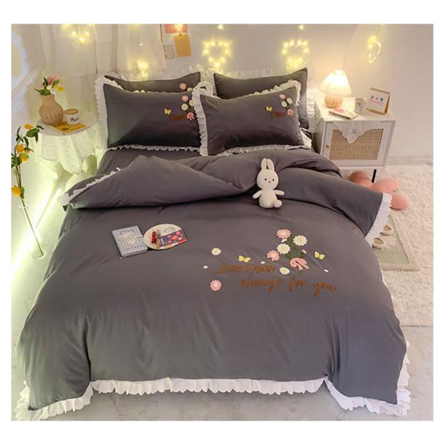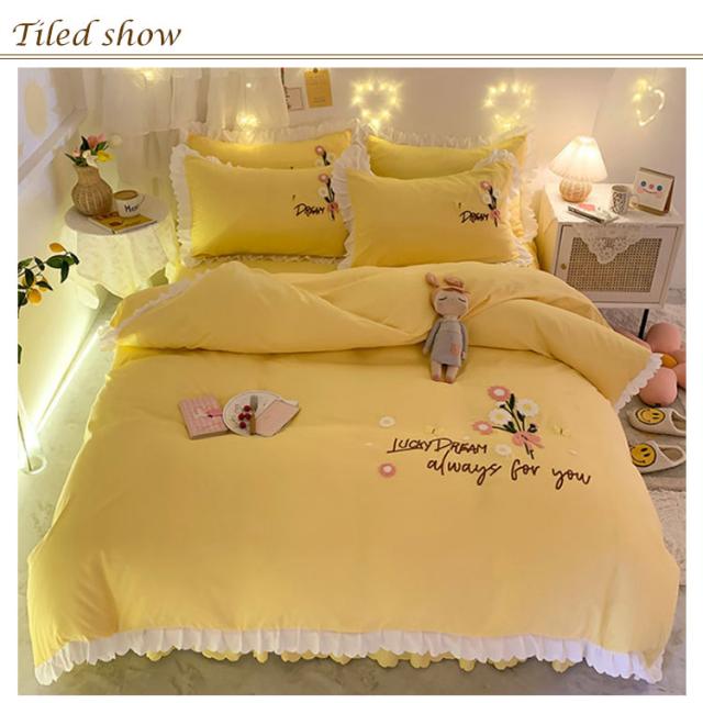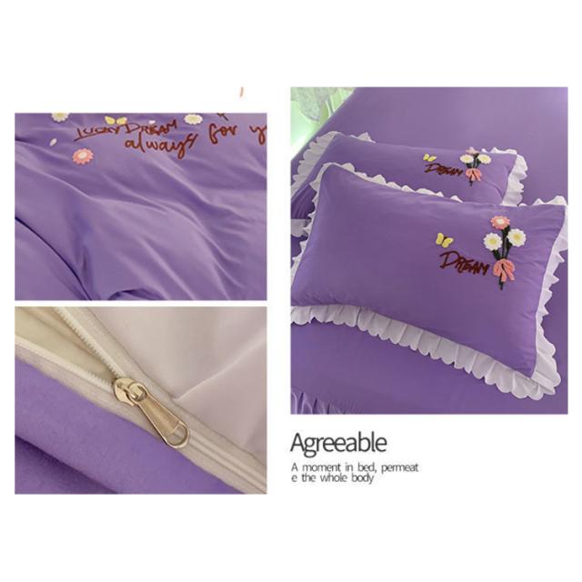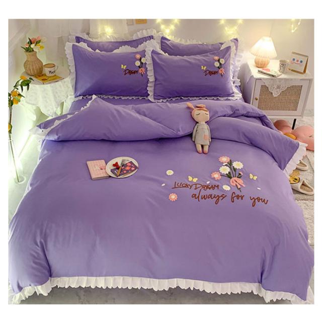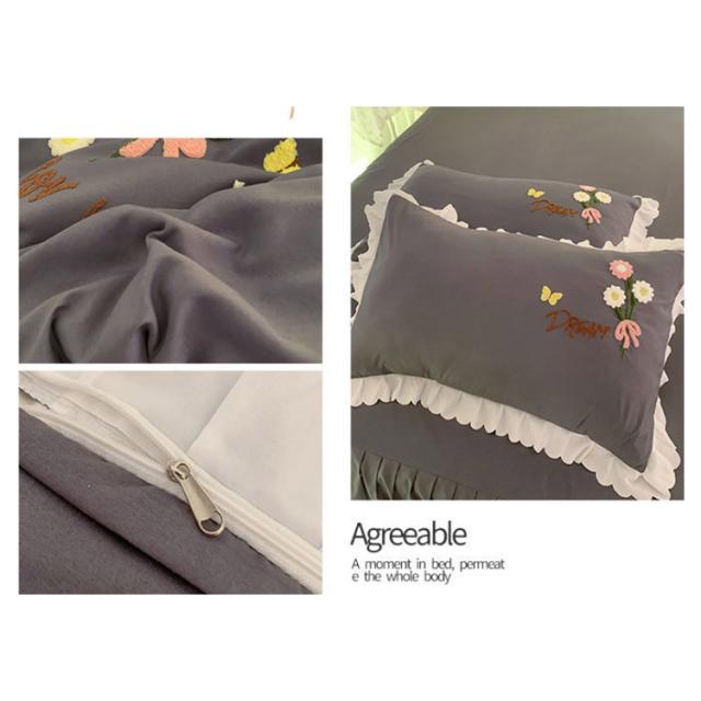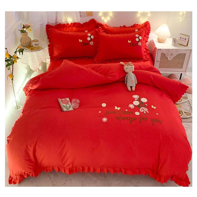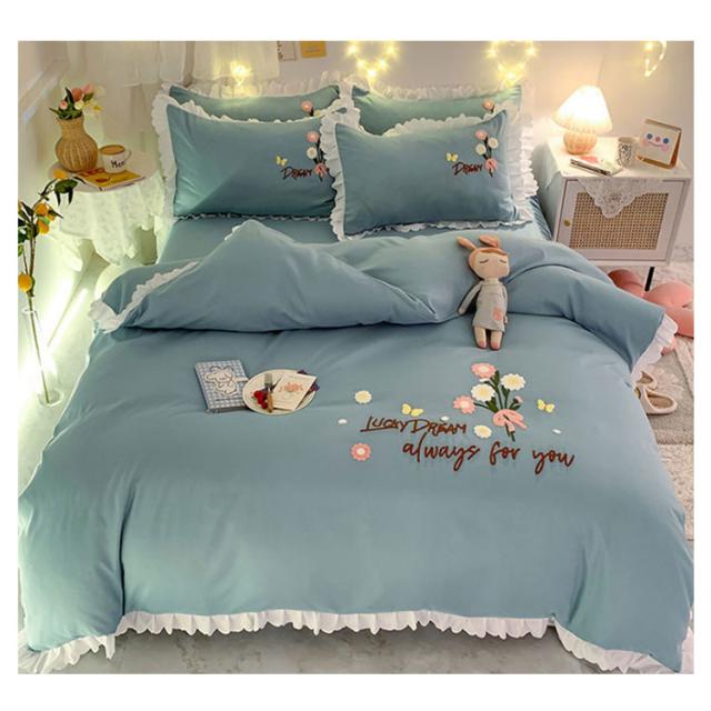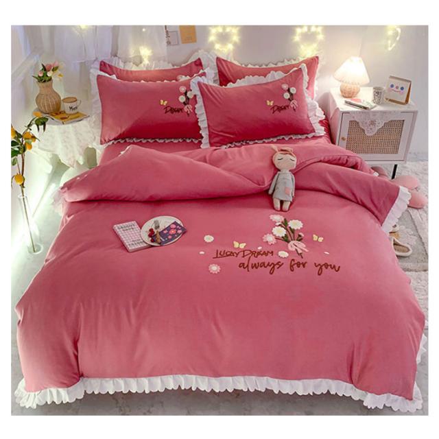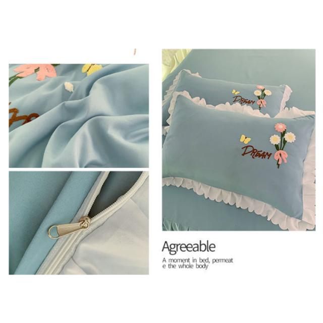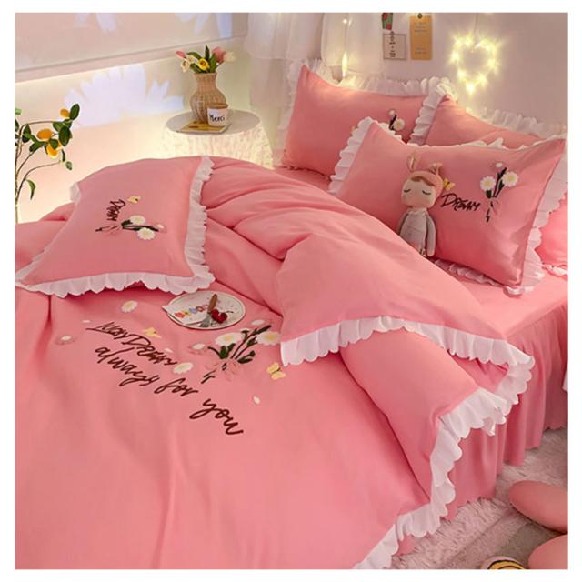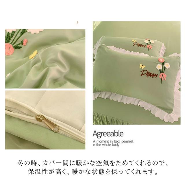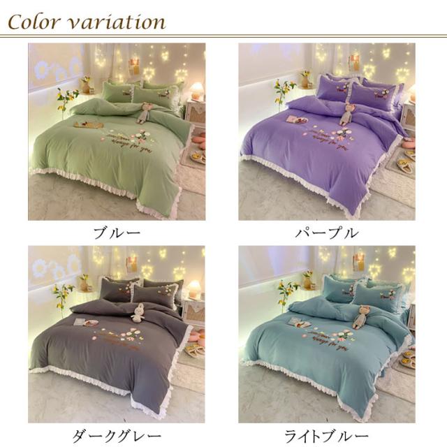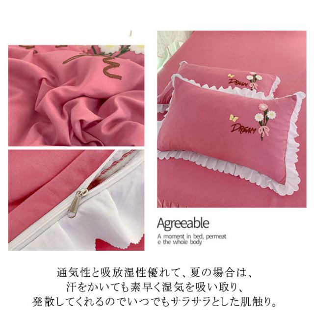 布団カバー 4点セット ベッド用カバーセット フリル セミダブル 寝具カバー 厚い タオル 刺? 掛け布団カバー 敷き布団カバー シーツ 枕カバー フラットシーツ ベットカバー 送料無料 少女 花 肌に優しい