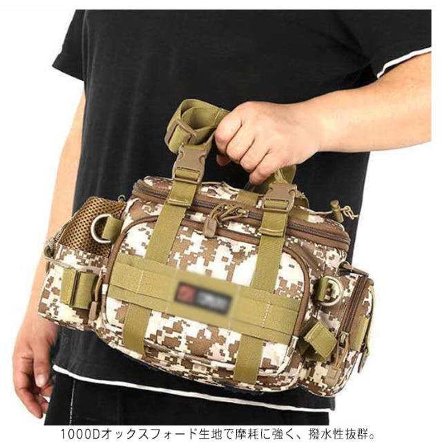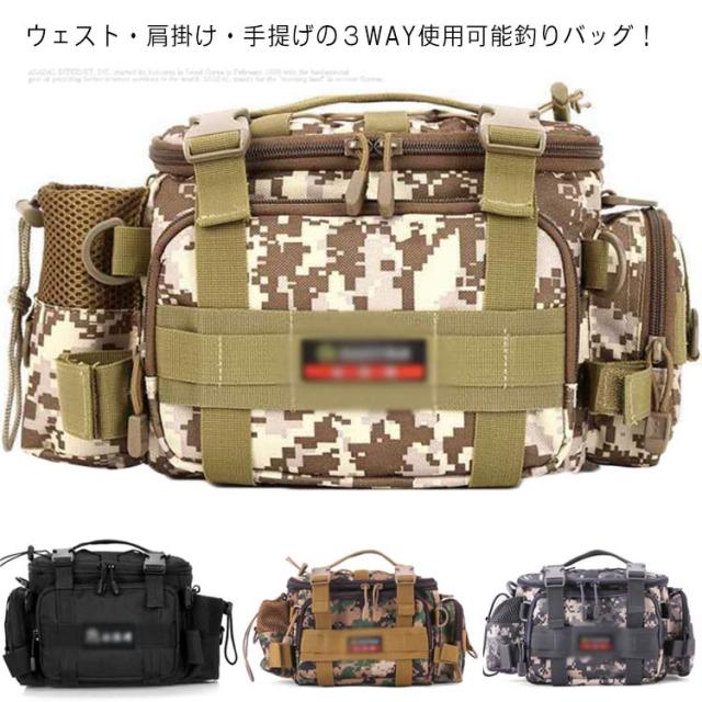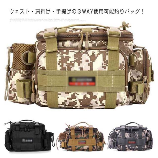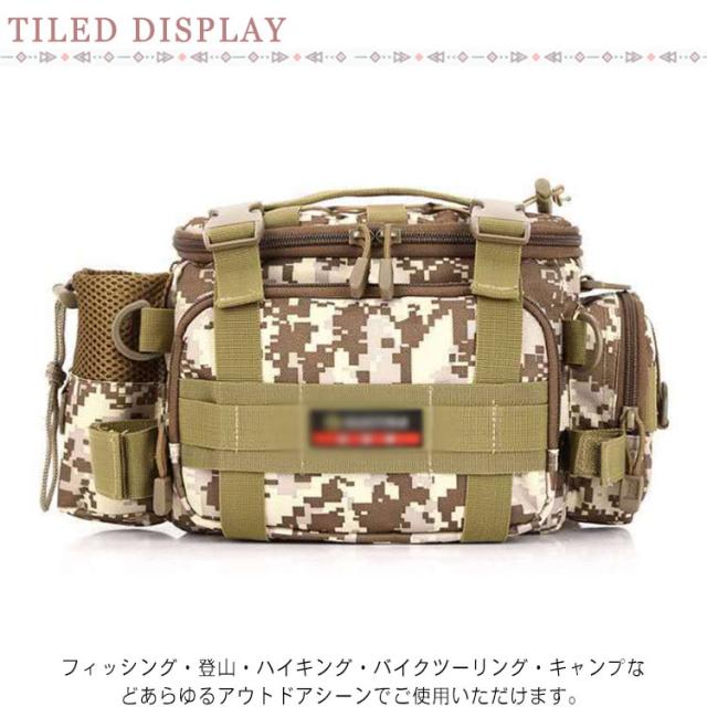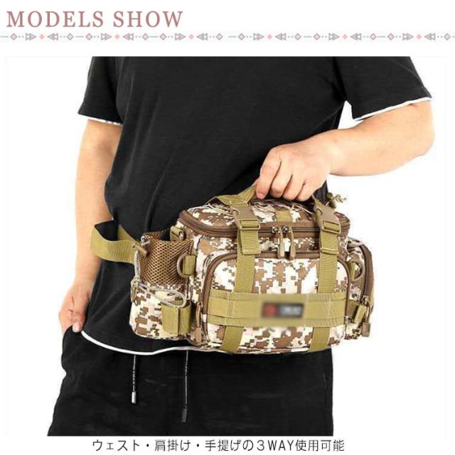 | ウェスト・肩掛け・手提げの3WAY使用可能釣りバッグ! たくさん収納できるのは当たり前! 1000Dオックスフォード生地で摩耗に強く、撥水性抜群。 フィッシング・登山・ハイキング・バイクツーリング・キャンプなどあらゆるアウトドアシーンでご使用いただけます。 | |