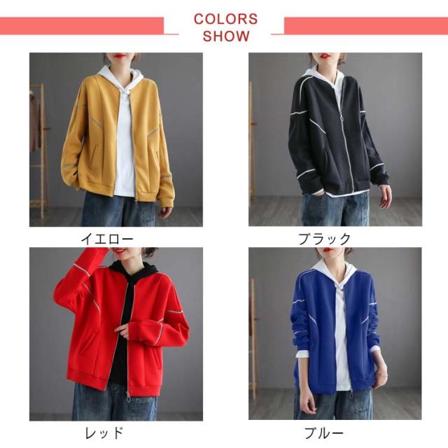 カジュアルパーカー レディース 春秋 長袖 ジャケット?アウター?ゆったり ショート丈 切り替え パーカー トップス 秋服 送料無料 防風対策 UV対策?トレーニングウェア ジャージ スポーツウェア?防寒対策 体型カバー
