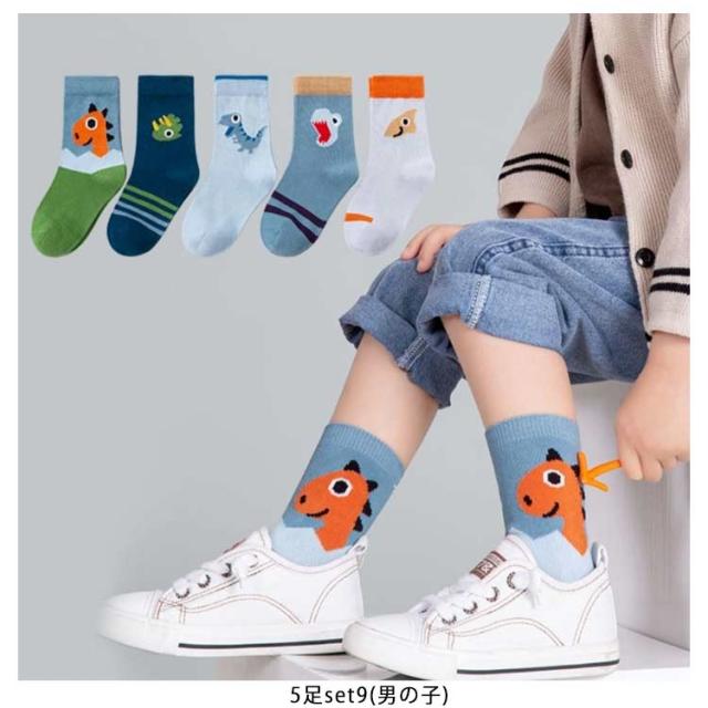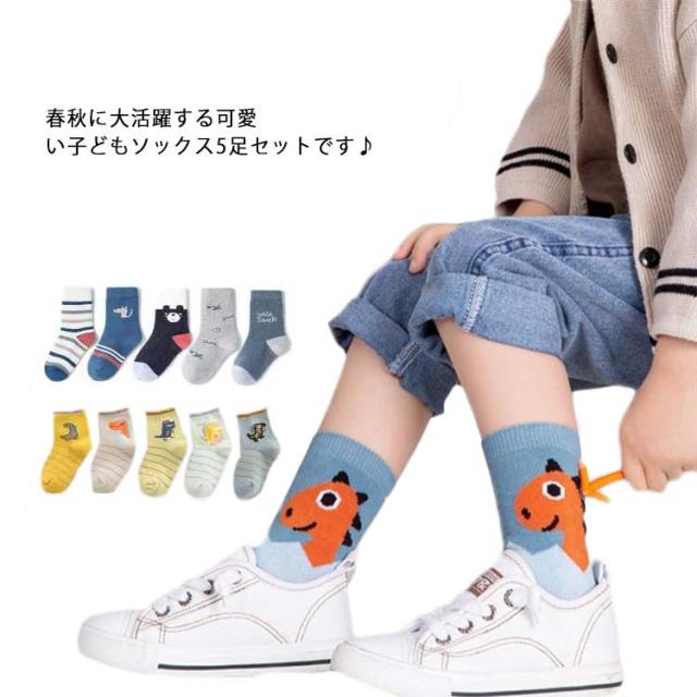 子供靴下 5足セット キッズ ソックス クルー丈 男の子 靴下 女の子 くつ下 ベビー 可愛い 子供服 子供用靴下 保育園 幼稚園 小学生 送料無料 通園 通学 普段着 おしゃれ ギフト プレゼント 内祝い 入園 入学 9-22cm