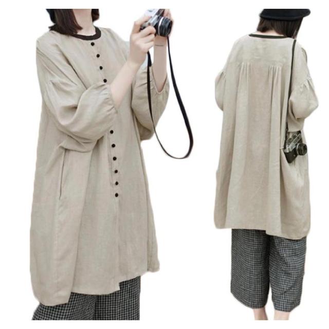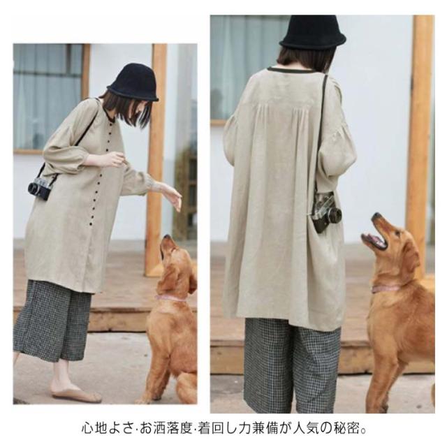 ロングtシャツ Tシャツ ワンピース 送料無料 レディース 長袖 体型カバー シンプル ボタン付き Tシャツワンピース ロング丈 ゆったり かわいい 春秋