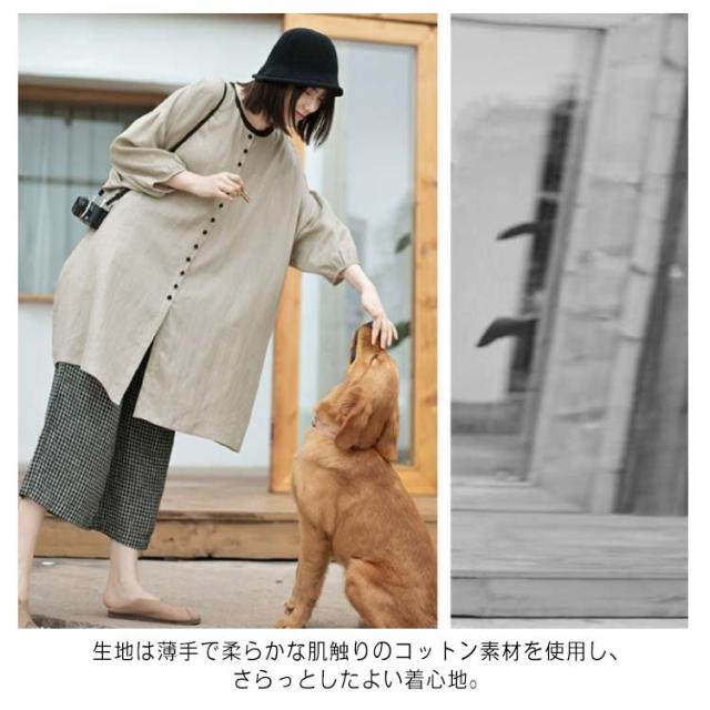 | 後にタックをを寄せることで落ち感のあるキレイなシルエットを添えました 心地よさ?お洒落度?着回し力兼備が人気の秘密。 生地は薄手で柔らかな肌触りのコットン素材を使用し、さらっとしたよい着心地。 気になる腰周りやお腹周りや太ももをカバーしてくれる程よい丈感が嬉しいポイントです! 柔らかい印象を生み出す | |