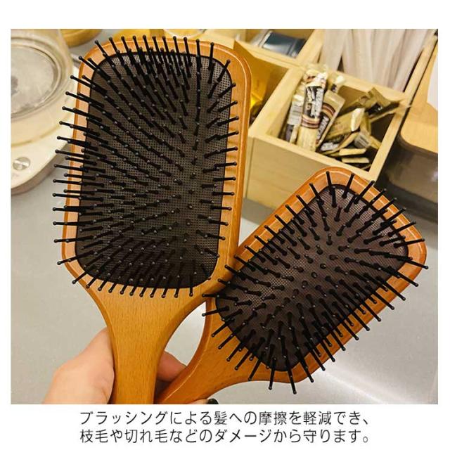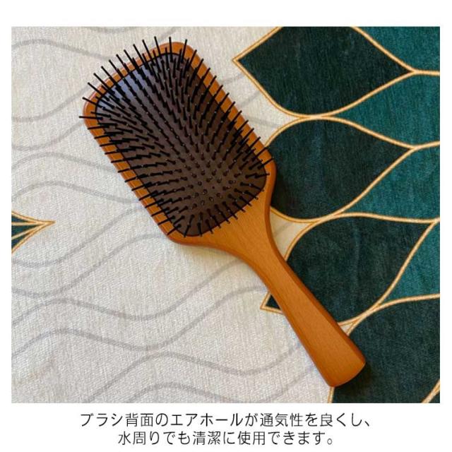 | ブラシの役割 丸いピンは頭皮を傷つけず、髪のもつれを効果的に取り除くことができます。 ブラッシングによる髪への摩擦を軽減でき、枝毛や切れ毛などのダメージから守ります。 ブラシ背面のエアホールが通気性を良くし、水周りでも清潔に使用できます。 大きなブラシ面でたくさんの髪をキャッチし、スピーディーに仕上げられます。 | |