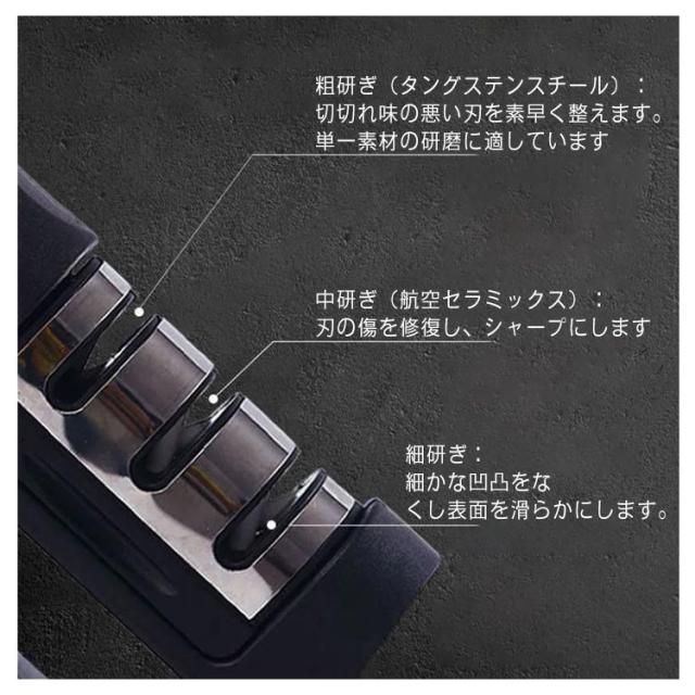 包丁研ぎ器 包丁 シャープナー 包丁磨き 3段階式 砥石 ダイヤモンドシャープナー 包丁研ぎ 研ぎ器 シャープナー キッチン 包丁 ナイフ 研ぎ器 簡単に研げる 便利 家庭用 操作簡単