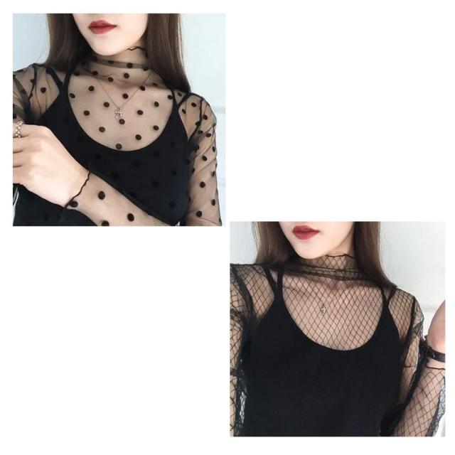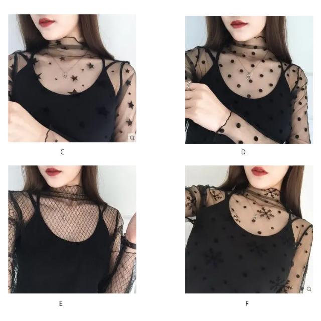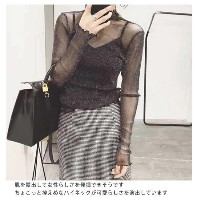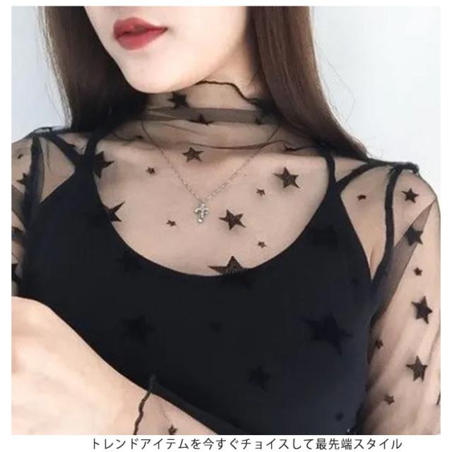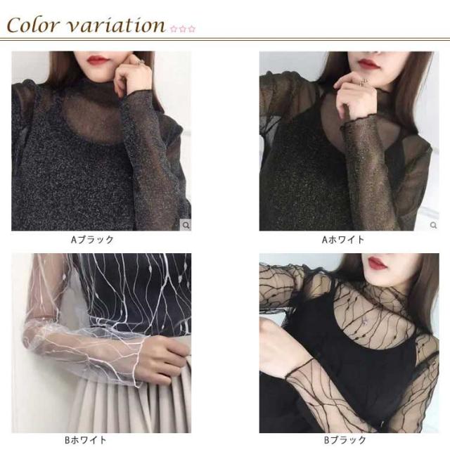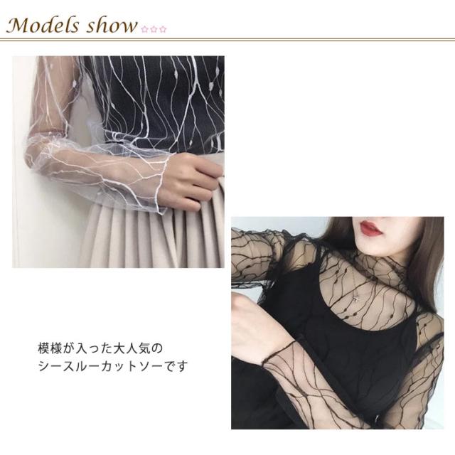 | 模様が入った大人気のシースルーカットソーです トレンドアイテムを今すぐチョイスして最先端スタイル 軽いチュールレース素材でストレッチが効いているので着心地が良いです シンプルなアイテムも華やかに輝きだします ビスチェのインナーにしてセクシーさ倍増しそうです 半袖にレイヤードしてもオシャレに決まります キャミソールの上やシャツのインナーなど自由自在に楽しめます 肌を露出して女性らしさを発揮できそうです ちょこっと控えめなハイネックが可愛らしさを演出しています | |