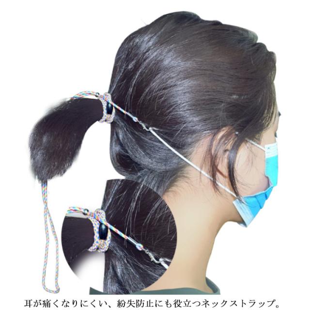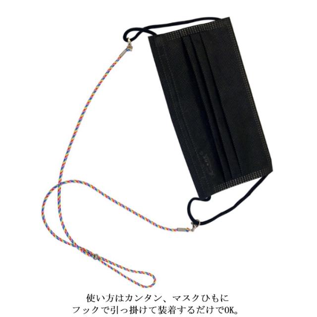 | 紛失時の予備、ご家族とのシェアなどに。 耳が痛くなりにくい、紛失防止にも役立つネックストラップ。 使い方はカンタン、マスクひもにフックで引っ掛けて装着するだけでOK。 マスク着用のオン、オフが快適。 長さ調整できるので、邪魔になりにくい長さで食事の際や運転中など、ちょっと外したい時でもマスクをなくす心配はありません。 | |