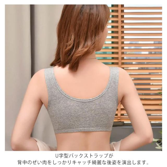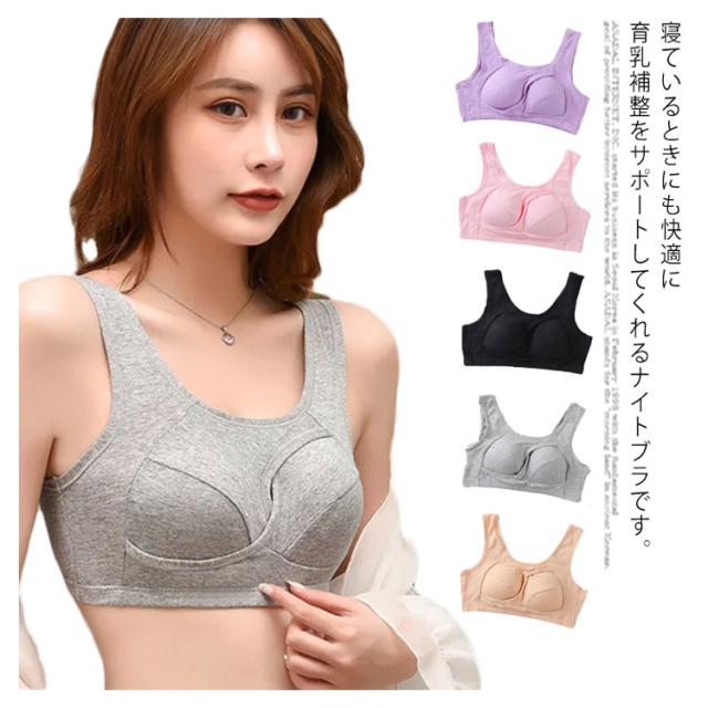 | 寝ているときにも快適に育乳補整をサポートしてくれるナイトブラです。 ノンワイヤーでストレスフリー! 程よく伸び縮みする肌にやさしい綿混素材を贅沢に使用したふんわりした肌触り! 締め付け感がなく快適な付け心地。 クロス設計により、バストの広がりを防止し、中央に寄せ、寝返りをしても横に広がらず、美しい形をキープし続けます。 肩に負担がかからないよう、太めのストラップを採用します。 U字型バックストラップが背中のぜい肉をしっかりキャッチ綺麗な後姿を演出します。 横流れもしっかり防止! パッドは簡単に取り外し交換可能でお洗濯もラクラク! | |