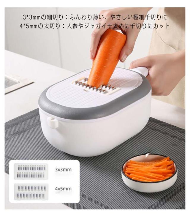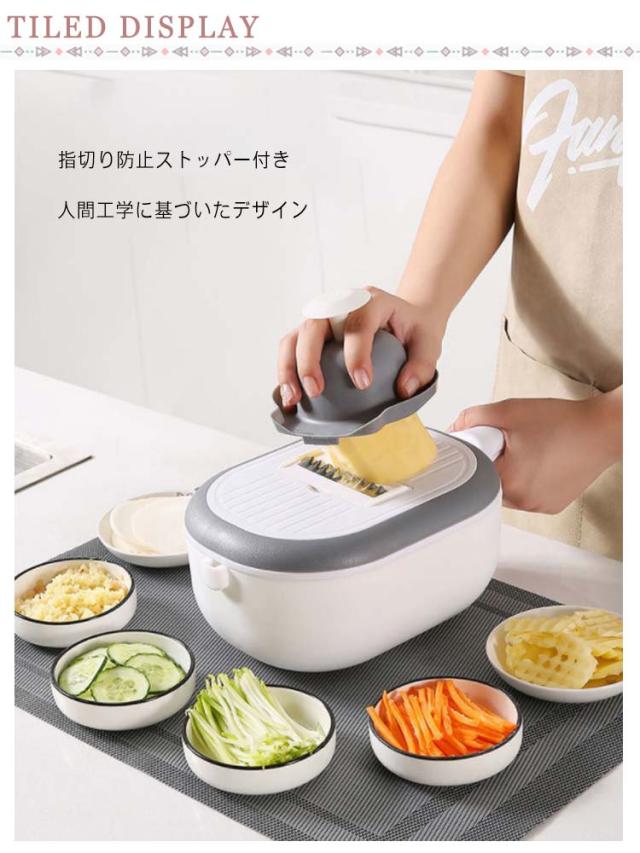 千切り スライサー 野菜調理器セット 野菜カッター マルチ スライサー みじん切り 多機能 細切り 千切り キッチンスライサー 安全ホルダー付き キッチン用品 野菜 おろし 薄切り 水切り皿 果物 調理器セット 1台7役 野菜