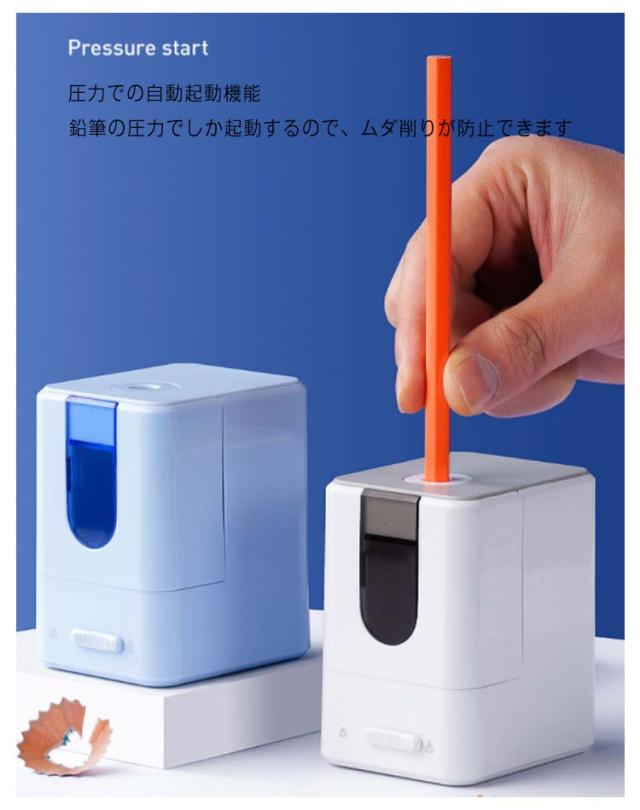 | 子供用の電動鉛筆削りです。 鉛筆の圧力でしか起動するので、ムダ削りが防止できます。また、子供に指が傷つかないことも防げます。 替え刃取り出すことができます。 使用回数を増えてきて、製品の寿命を延長することになります。 お得で環境にやさしい電動鉛筆削りです。 素早くパワフルに削れるので家庭や学校の文房具や入学祝いのプレゼントに♪ | |