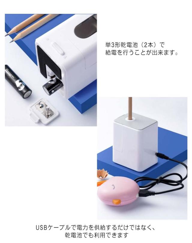 鉛筆削り 電動 鉛筆けずり 文房具 えんぴつ削り 鉛筆削り器 充電式 電池対応 替刃付き 太さ調整 滑り止め付き USB 給電 乾電池 入学祝い コンパクト スピーディー 電動シャープナー 学校 事務 子ども 学習 入学祝い 子供 ギフト プレゼント