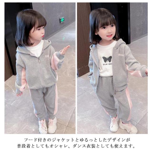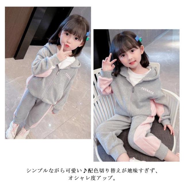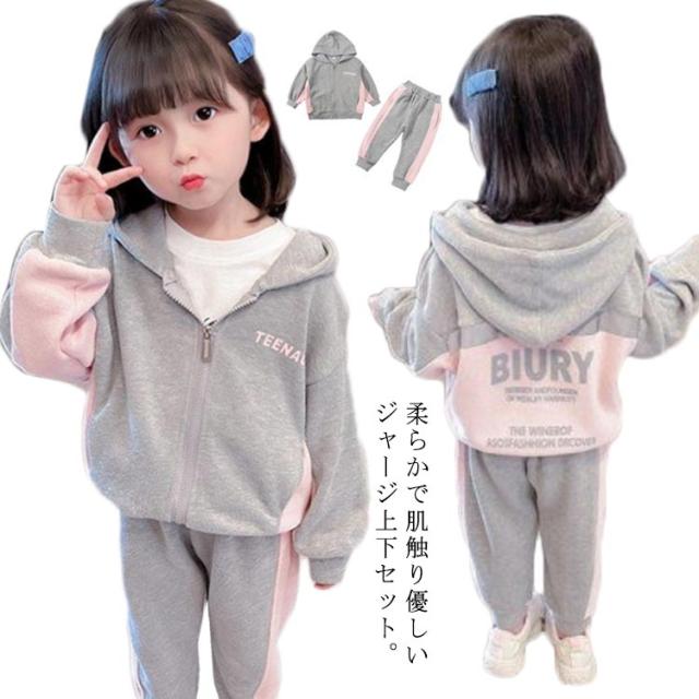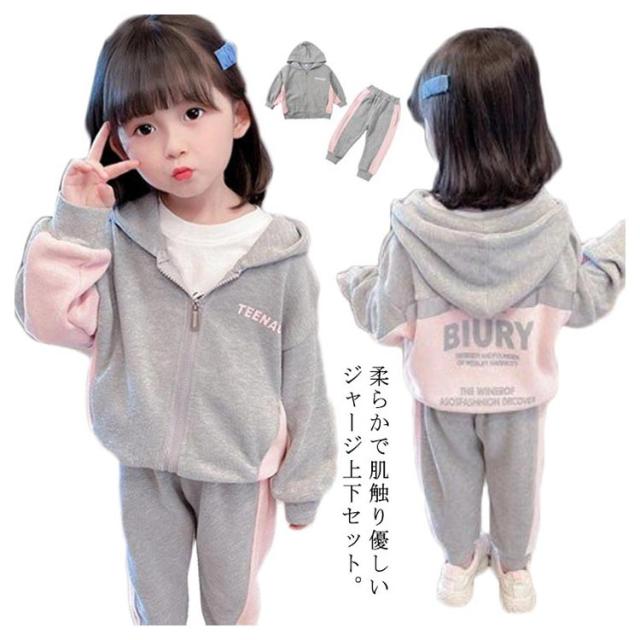 キッズ ジャージ 上下 スウェット セットアップ 女の子 パーカー スウェットパンツ 90 100 110 120 130 cm 小学生 修学旅行 林間学校 部屋着 秋服 新作 春秋
