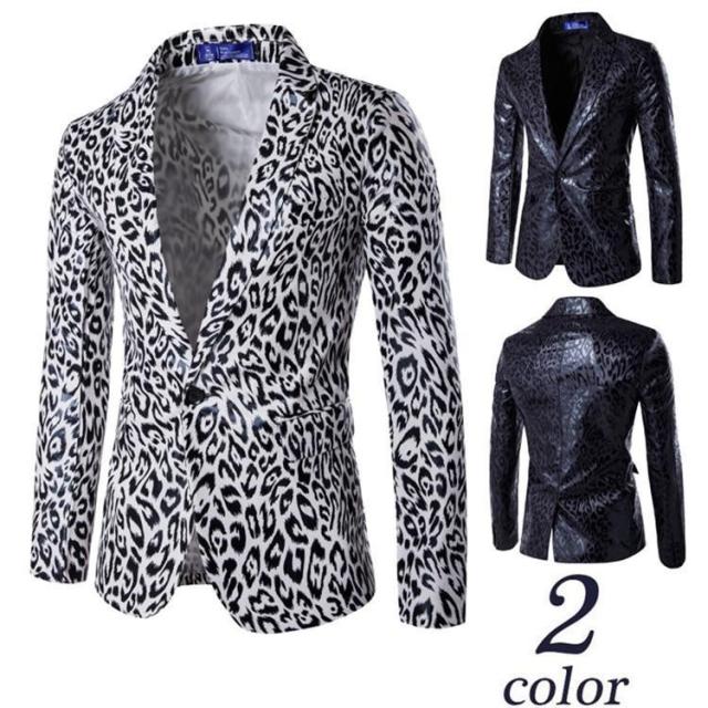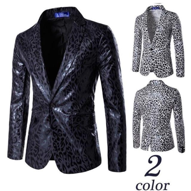 メンズジャケット テーラードジャケット メンズ ジャケット ひとつボタン ヒョウ柄 ジャケット 演出服 礼服 ステージ 衣装 公演服 団体服 発表会