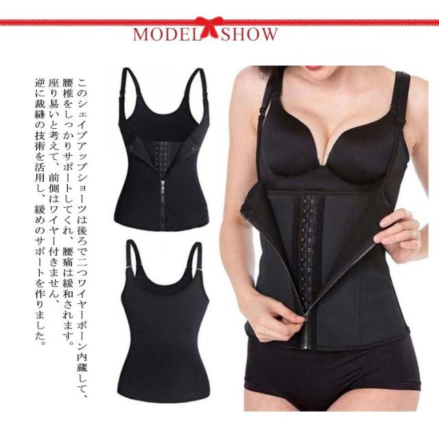 | (美腰効果が抜群、腰サポート)座るも、立つも、同じ姿勢で長時間の作業で腰痛はなりやすいです。このシェイプアップショーツは後ろで二つワイヤーボーン内蔵して、腰椎をしっかりサポートしてくれ、腰痛は緩和されます。座り易いと考えて、前側はワイヤー付きません、逆に裁縫の技術を活用し、緩めのサポートを作りました。着用して、お腹引き締め、姿勢改善に役立ちます。姿勢を良くしたい方々は、ぜひご使用いただけます。 (むねサポート、バストアップ)脇高の設計でバストアップの効果もあります。脇に流れた脂肪をバストに集めて、キープして、バストアップになります。産後リフォーム、ボディライン補正、哺乳期の方々も着用できて、産後姿勢補正と哺乳すること、この補正コルセット同時にできます。 (補正下着、姿勢改善)ベストのデザインが、ウエストニッパーのお腹部分が、ホックは3段階調節できます。肩ひもも調節可能ですので、長時間着用しても、苦しくないのです。適当な圧力によってお腹を引き締め、背筋を伸ばし、猫背の改善、姿勢がよくなります。立つも、座るときも、綺麗な姿勢を保つ、美しいボディラインを見せましょう。 (様々なシーンで活躍) 日常生活、デイリーショピング、産後補正、運動、姿勢改善、このコルセットは全部適合してますよ。お腹が締め付けられるので、自然とお腹を意識するようになりますし、食べ過ぎ防止、ダイエットに良いです。ドレスや洋服などを着こなすとき、美しいボディラインを見せてくれます。シェイプアップ効果が抜群です。 | |
