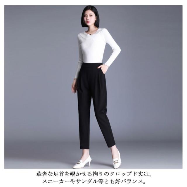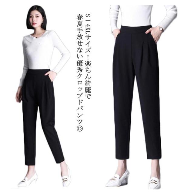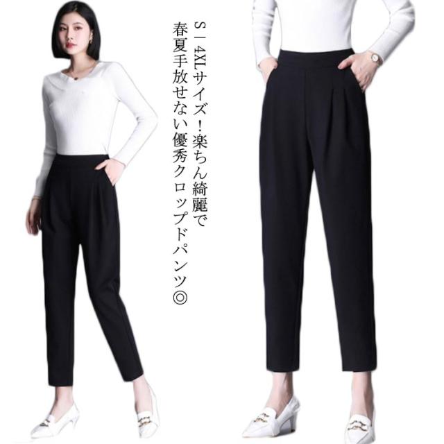 S−4XLサイズ!タック入り テーパードパンツ レディース サルエルパンツ スーツパンツ 9分丈 10分丈 バックゴム ボトムス オフィス キレイめ カジュアル シンプル 無地 春夏 大きサイズ 入学式 入園式 卒業式 卒園式