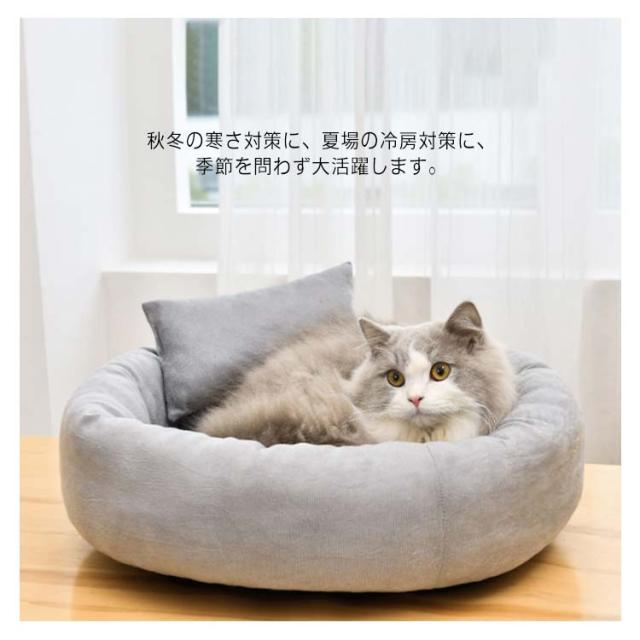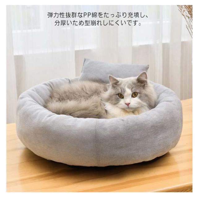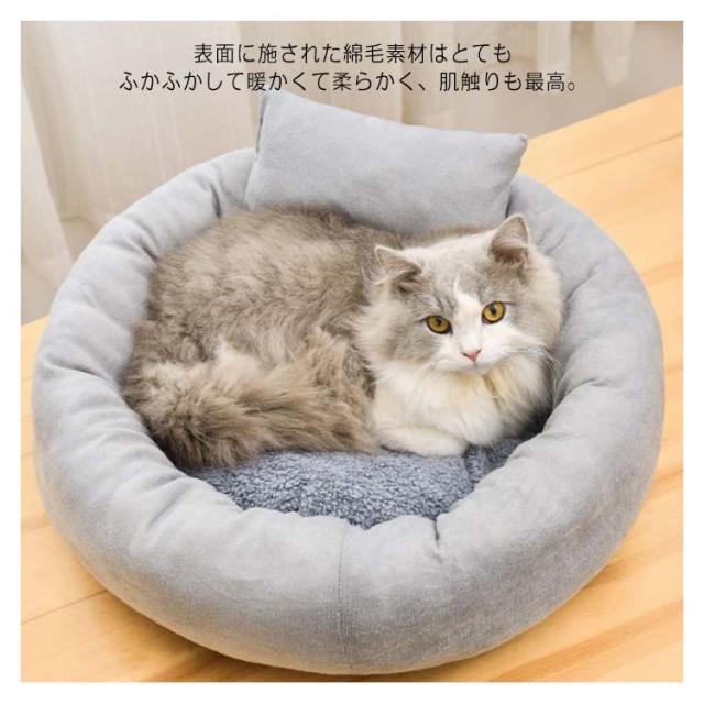 ペットベッド 猫 小型犬 丸型 枕付き 猫用 ソファー ベッド クッション 50cm*50cm ふわふわ 丸洗い 柔らかい 暖かい おしゃれ 可愛い マット 寝具 キャット ペット用品 洗える オールシーズン ペットグッズ