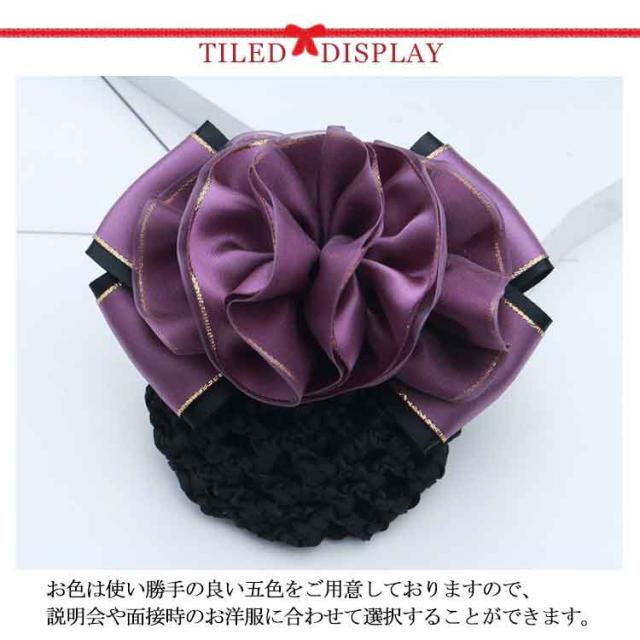| シンプルの中にサテンリボン飾りがおしゃれ。ちょうどいい大きさで、つけても大げさにならず、上品におさまってくれます。 お色は使い勝手の良い四色をご用意しておりますので、説明会や面接時のお洋服に合わせて選択することができます。 余分な装飾がないのでオフィスやお仕事、冠婚葬祭でも活躍します。 フォーマルに使えるデザインで、就職活動や髪をまとめないといけない職場での必須アイテム。お役立ちまちがいなし!入学式・卒業式、七五三、成人式、初詣、ダンスの練習に、茶道のおけいこ、和装にも似合います。 | |