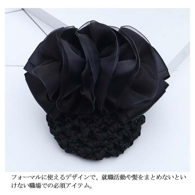 お団子ネット付き ヘアーアクセサリー 髪留め 髪飾り レディース 卒業式 入学式 まとめ髪 クリップ シニヨンバレッタ ヘアアレンジ 就活 受験 リボン オフィス 会社 ブラック 黒 子供 大きめ おだんご シンプル フォーマル 冠婚葬祭 ヘアネット 結婚式 発表会 大人 パーティ