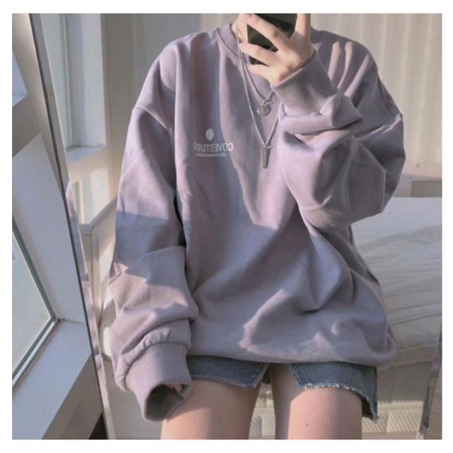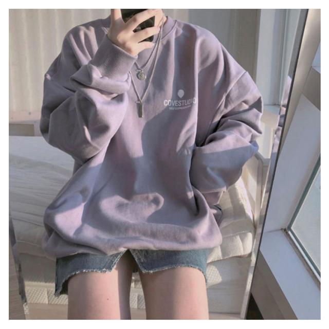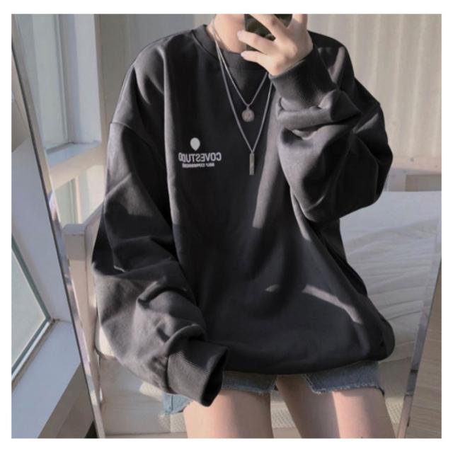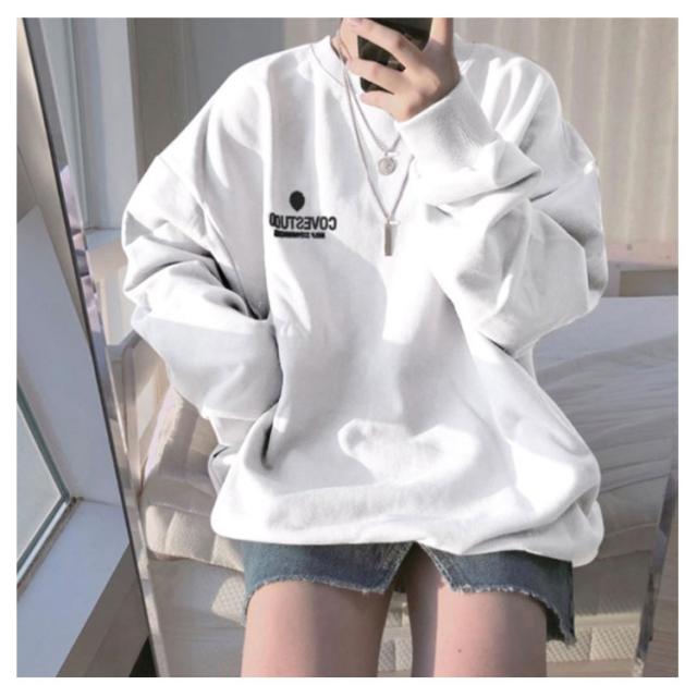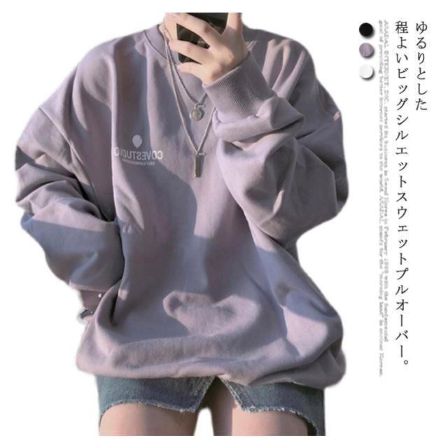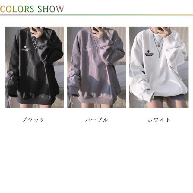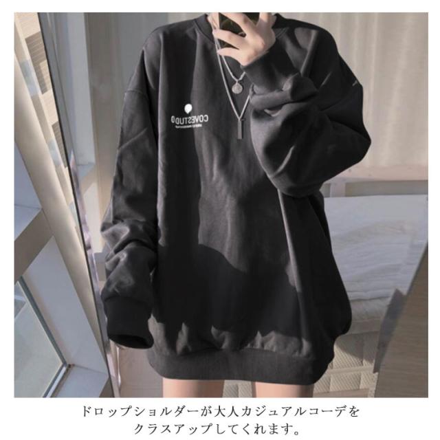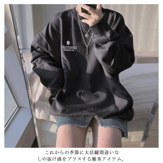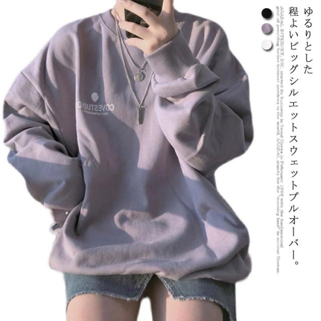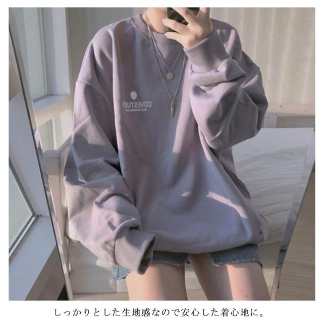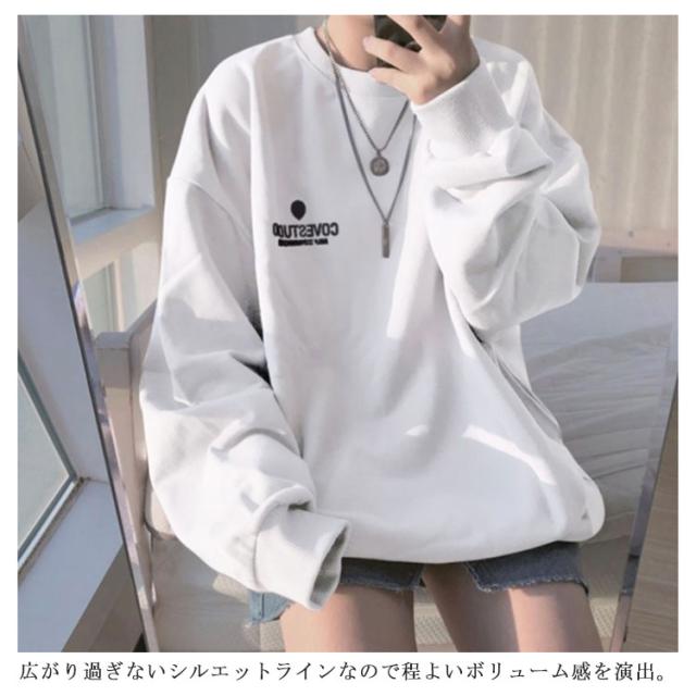 (送料無料)カットソー レディース トレーナー プルオーバー パーカー ワンポイントロゴトレーナー 長袖 ドロップショルダー トップス フーディ 秋冬 スウェット スエット ゆったり 大きいサイズ 韓国 ファッション 抜け感 カジュアル