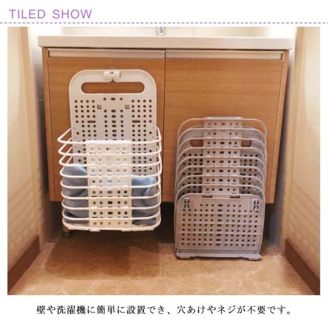 | シンプルなデザインで、日常生活用品を収納できるバスケット。 壁や洗濯機に簡単に設置でき、穴あけやネジが不要です。 フックに掛けらて、場所を取れず、スペースを節約できる洗濯かごです。 使わないときは簡単に折りたたんで収納できるので、省スペースになります。 取っ手がついていて、持ち運びやすいのも便利です。移動しても使いやすいです。 | |