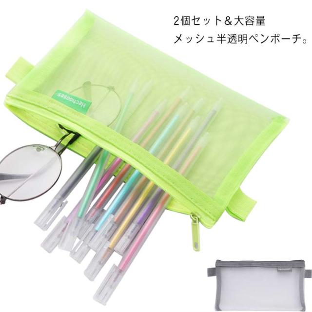 送料無料ペンケース 筆箱 筆入れ メッシュ 半透明 2個セット クリアペンケース ペンポーチ シンプル 大容量 薄型 軽量 文房具 ペン入れ 小物入れ 収納ポーチ コスメポーチ トランベルポーチ 通学 学生 女子 高校生 中学生 小学生 おしゃれ 入学プレゼント