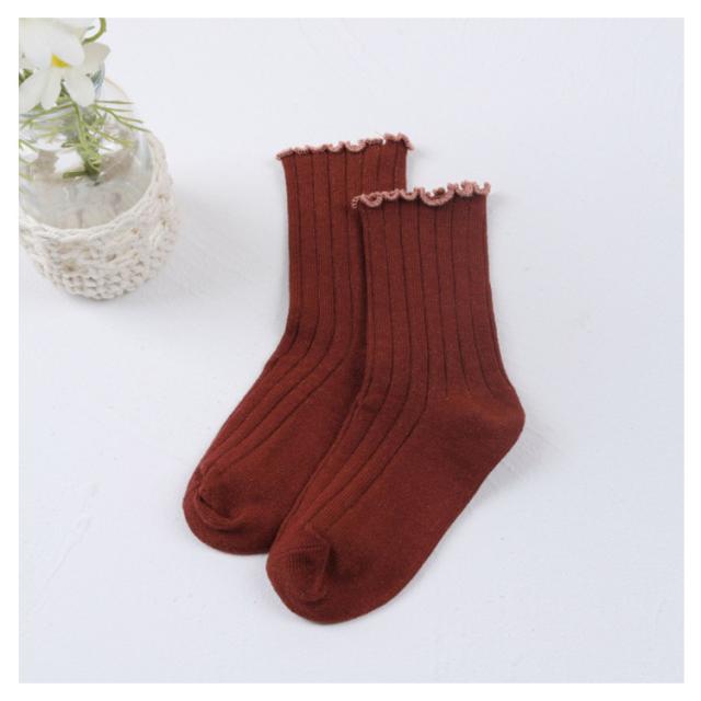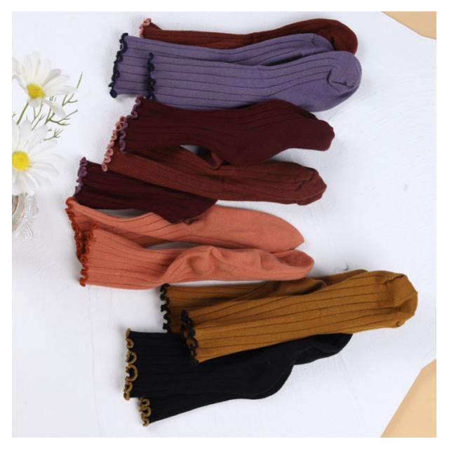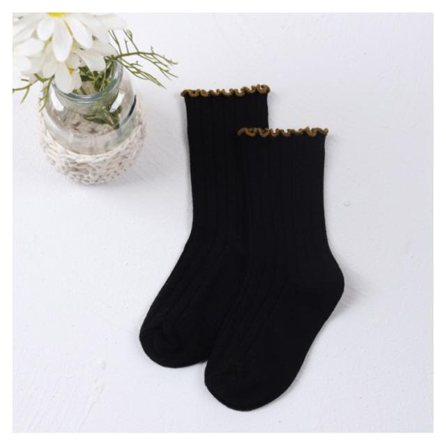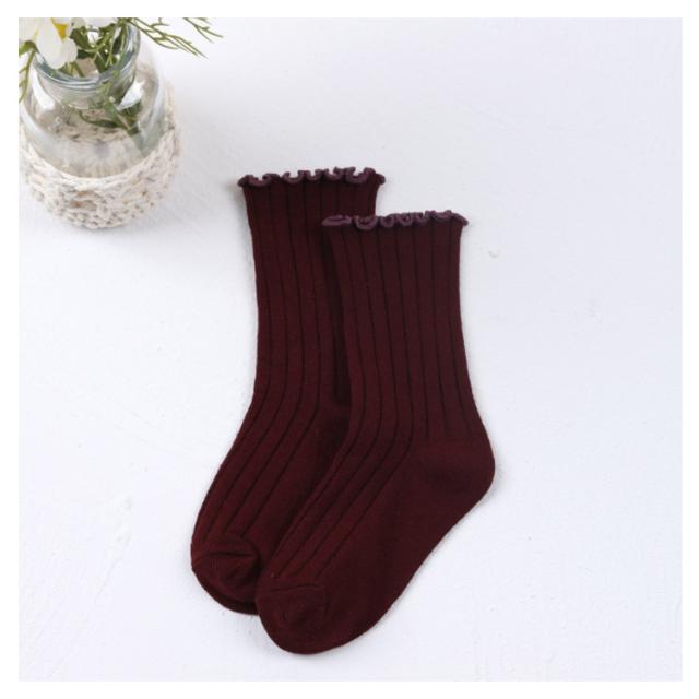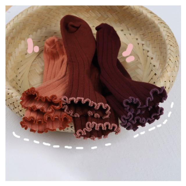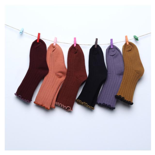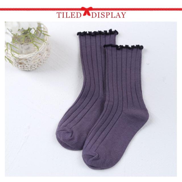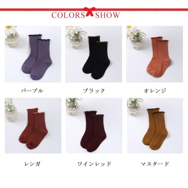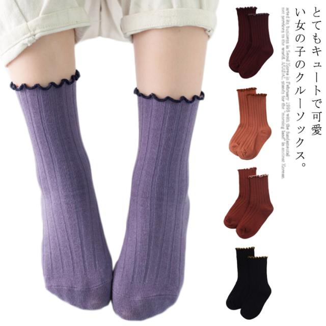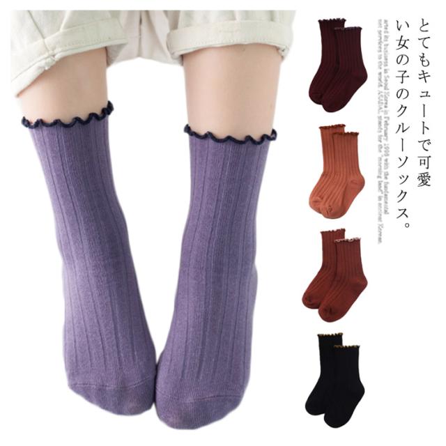 送料無料 クルーソックス 靴下 女の子 フリル 可愛い 子供用 靴下 ひざ下 ソックス ショートソックス 無地 リブ編み ベビー 幼稚園 小学生 通園 通学 子ども こども