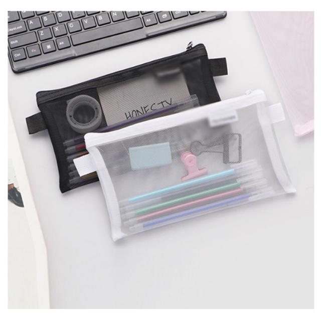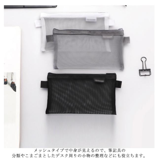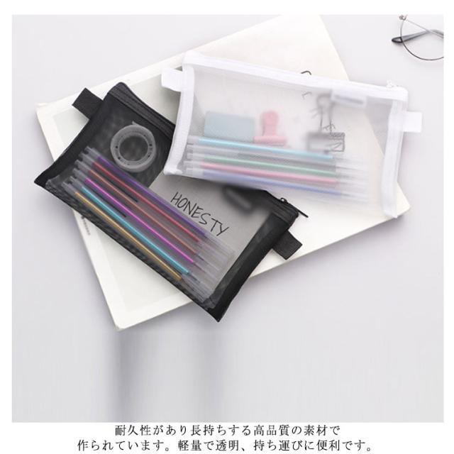 ペンポーチ クリア メッシュ 筆箱 ペンケース おしゃれ メッシュケース 透明 筆箱 韓国 シンプル 黒 小学生 中学生 小さめ 大人 大学生 女子 白 男の子 女の子 無地 ポーチ かわいい ふでばこ