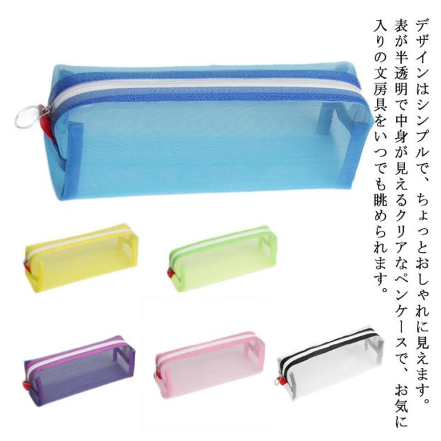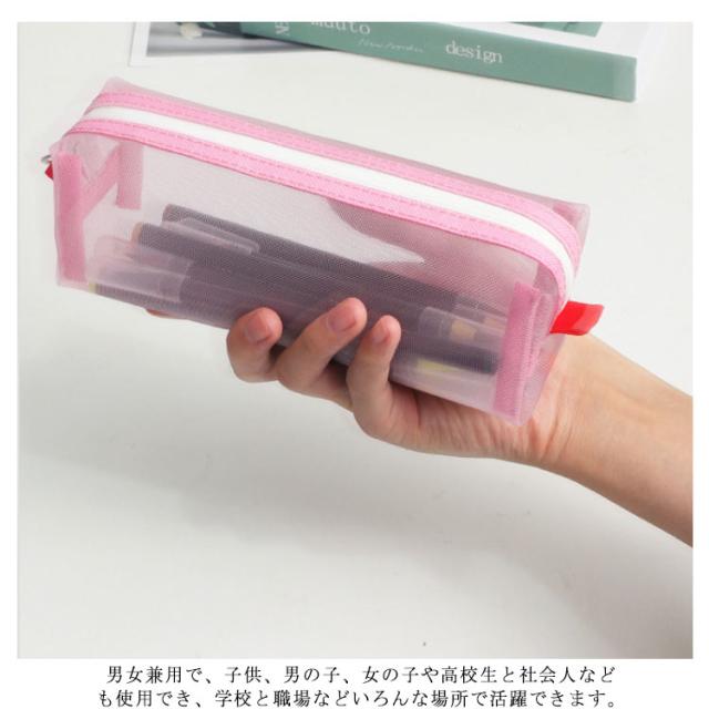 ペンケース 筆箱 ふでばこ メッシュペンケース 透明 大容量 ペンポーチ クリア 文房具収納 収納ポーチ 筆入れ 男の子 女の子 可愛い 中学生 入学祝い おしゃれ 高校生 可愛い 韓国 シンプル 黒 小学生 小さめ 大人 大学生 無地 かわいい ふでばこ ピンク