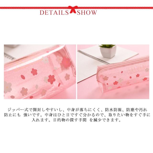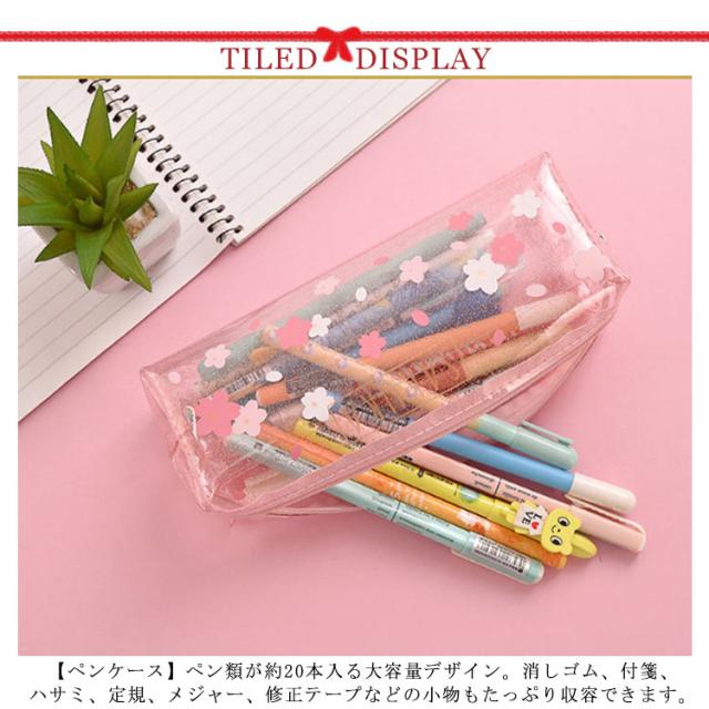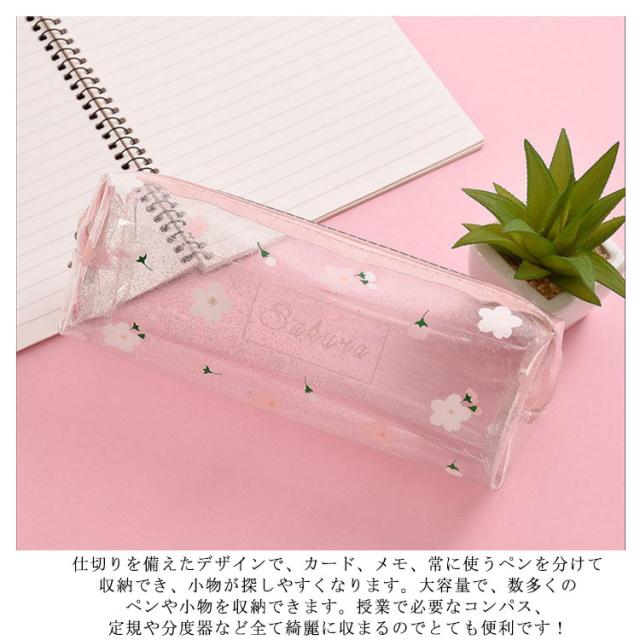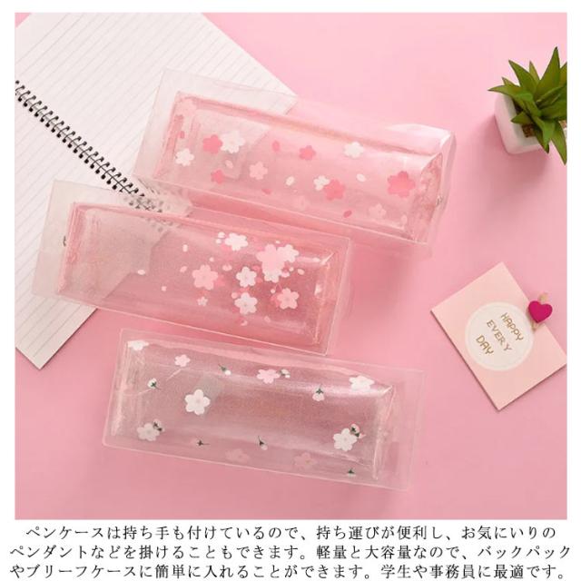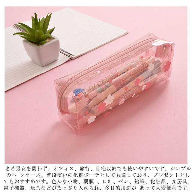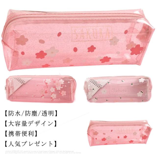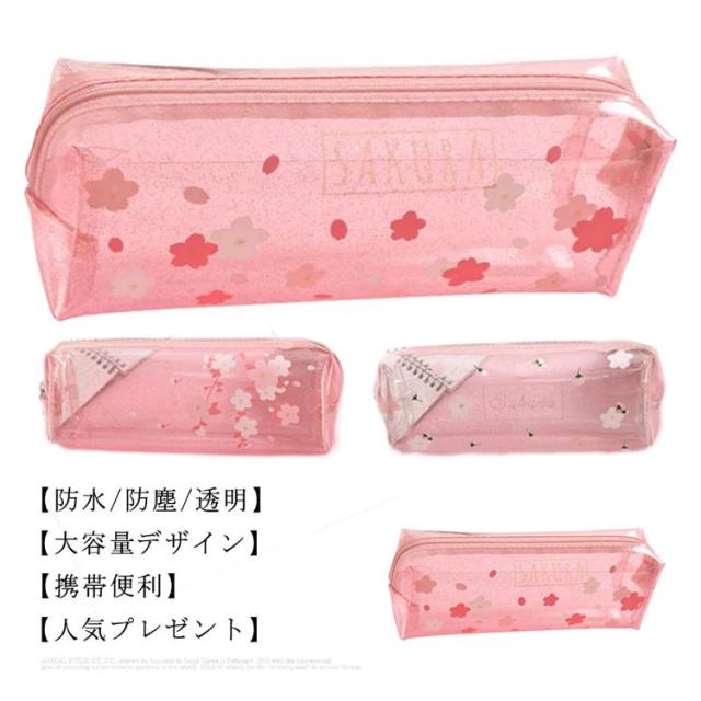 ペンケース 筆箱 クリアペンケース 小物入れ 透明 花柄 さくら かわいい おしゃれ ファスナー 大学生 高校生 中学生 小学生 筆記用具 女の子 大容量 可愛い 韓国 シンプル 小さめ 大人 女子 無地 ポーチ かわいい ふでばこ ピンク