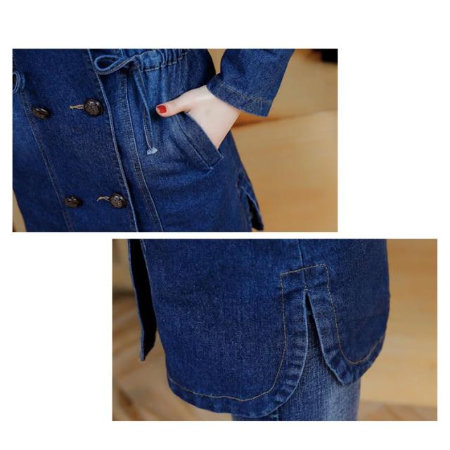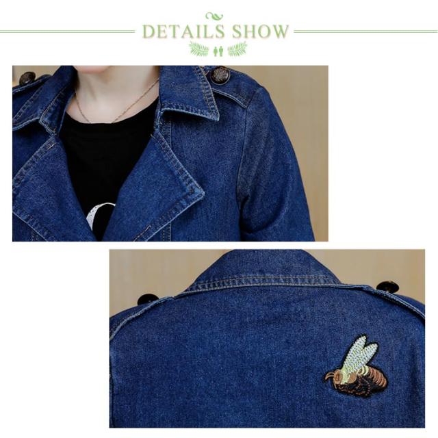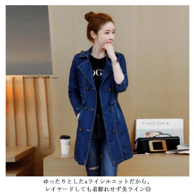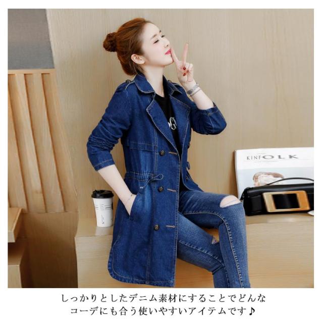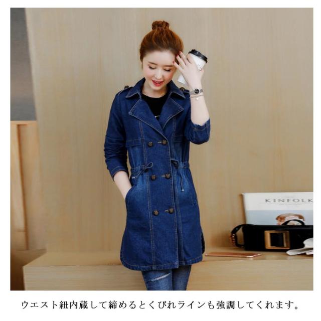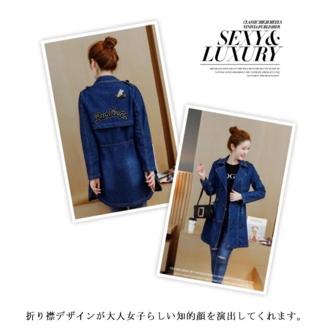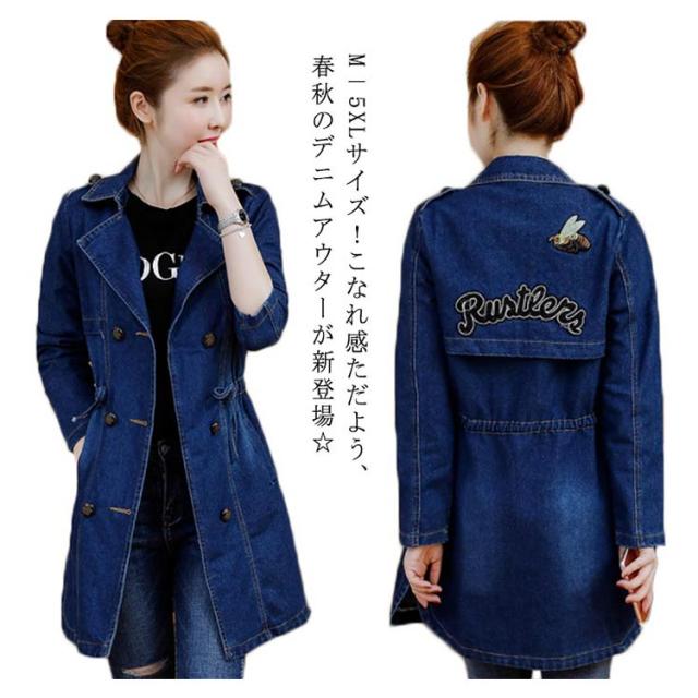 M−5XLサイズ!デニムトレンチコート デニムアウター レディース デニムコート ロングコート アウター コート 刺繍入り カジュアルコート ミドル丈 ウエスト紐付き 大きサイズ 春服 秋服