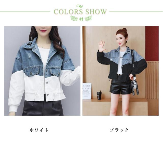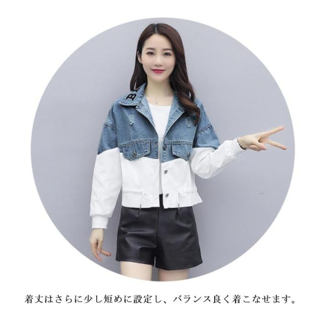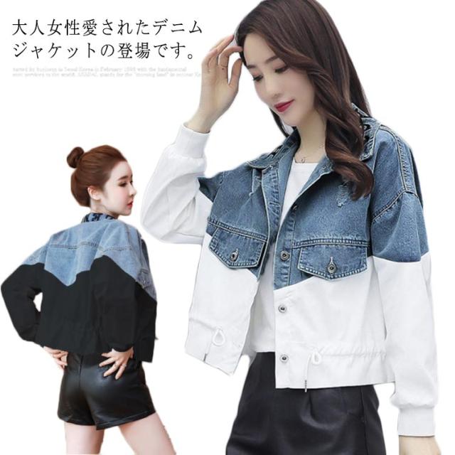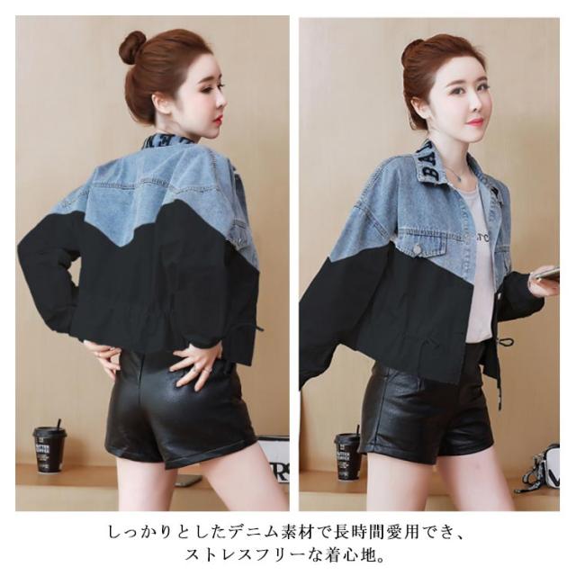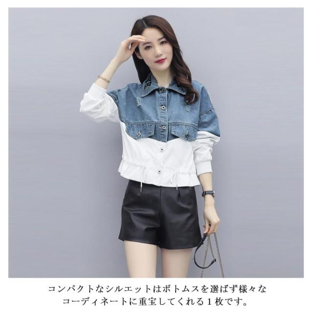 秋アウター デニムジャケット 切り替え デニムアウター ジージャン Gジャン ショート丈 裾紐付き シャツジャケット 春服 春物 秋服 秋物 おしゃれ 可愛い