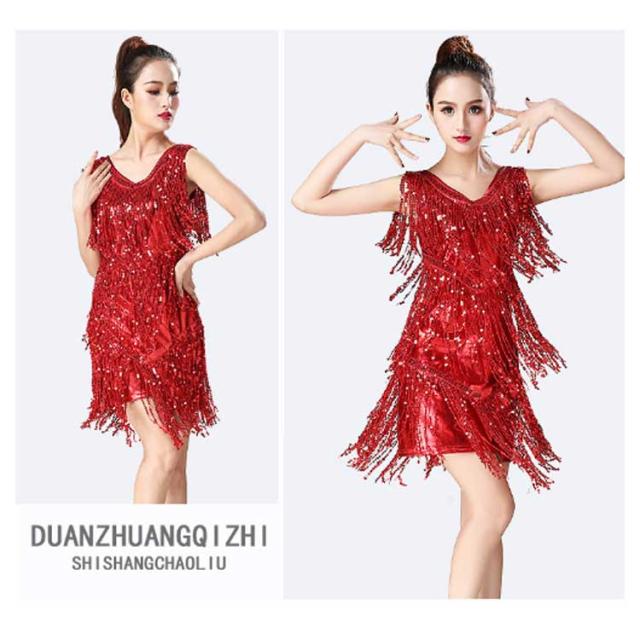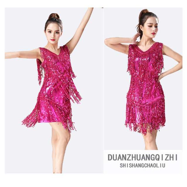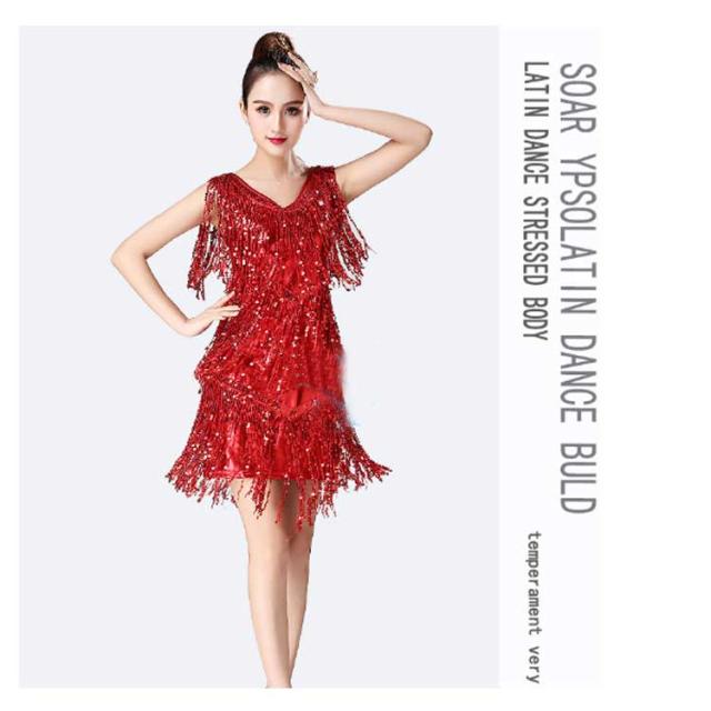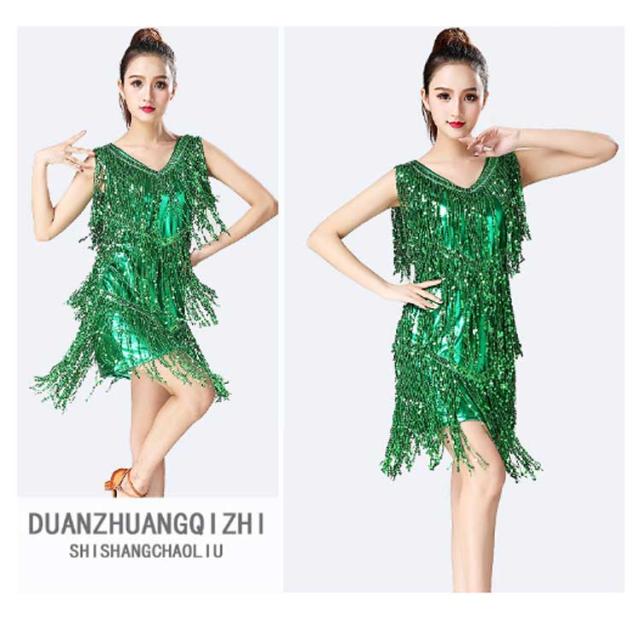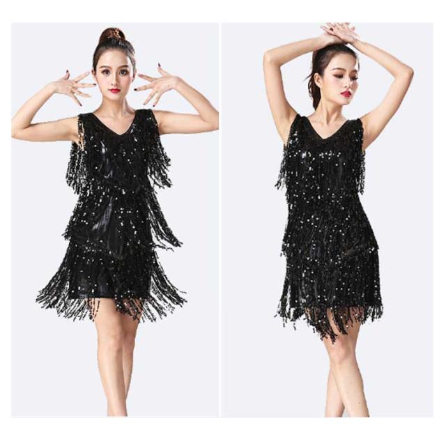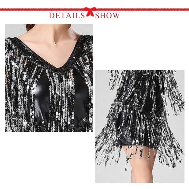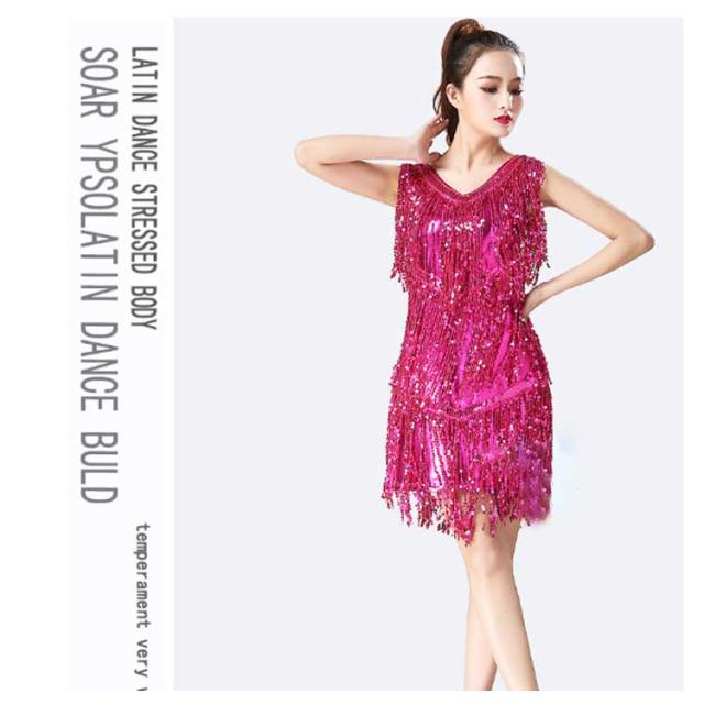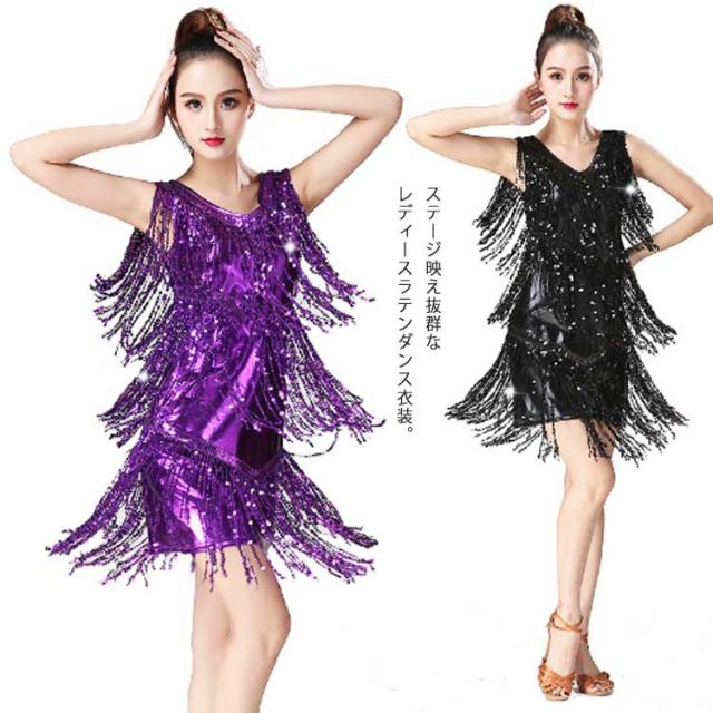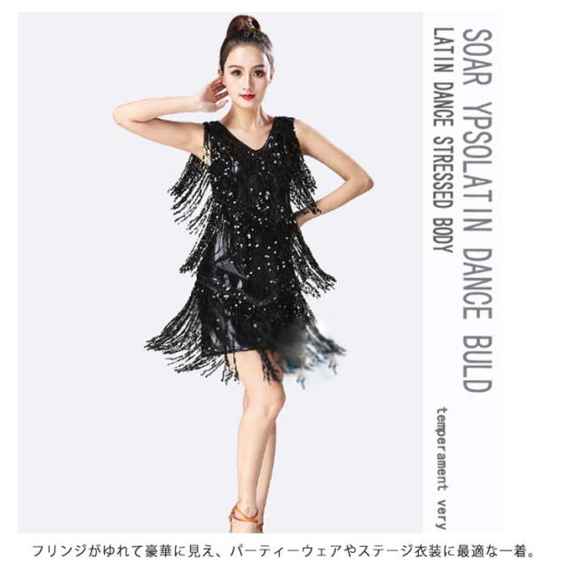 【送料無料】ダンス衣装 スパンコール 衣装 コスチューム ミニワンピ ノースリーブ タッセル 社交ダンス ラテン ダンスワンピース ダンスウェア ステージ衣装 舞台衣装 ラテンダンス衣装 キラキラ レディース 女の子 ジュニア