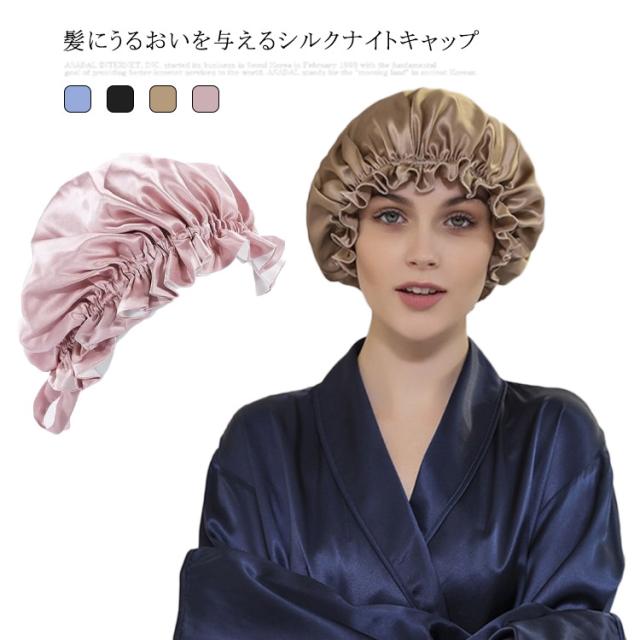 送料無料 シルク ナイトキャップ シルクキャップ シルク100% ロングヘア 静電気抑制 ゴム 調節 かわいい レディース 睡眠 就寝用 キャップ 帽子 女性 シルク製 保湿 ヘアケア パサつき予防 美髪 サイズ調整 プレゼント