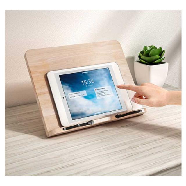 | 様々な場面で大活躍できる本格派ブックスタンド。 雑誌や書籍、絵本等のスタンドにレシピ本を立ててのお料理を快適にするも良し、楽譜を立てて演奏する場合にも役に立ちます。 5段階の調整機能付きで用途に合わせ姿勢に合わせてストレスを軽減してくれます。 | |