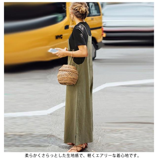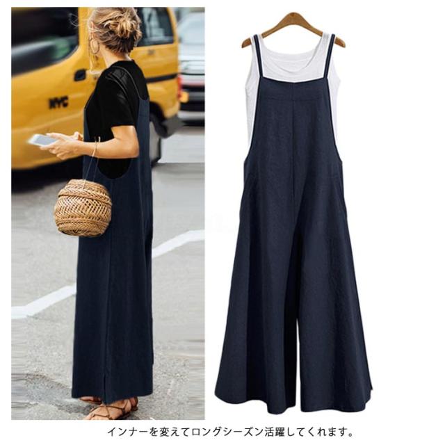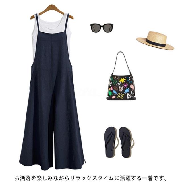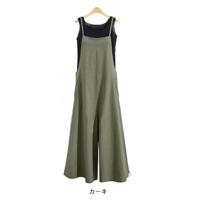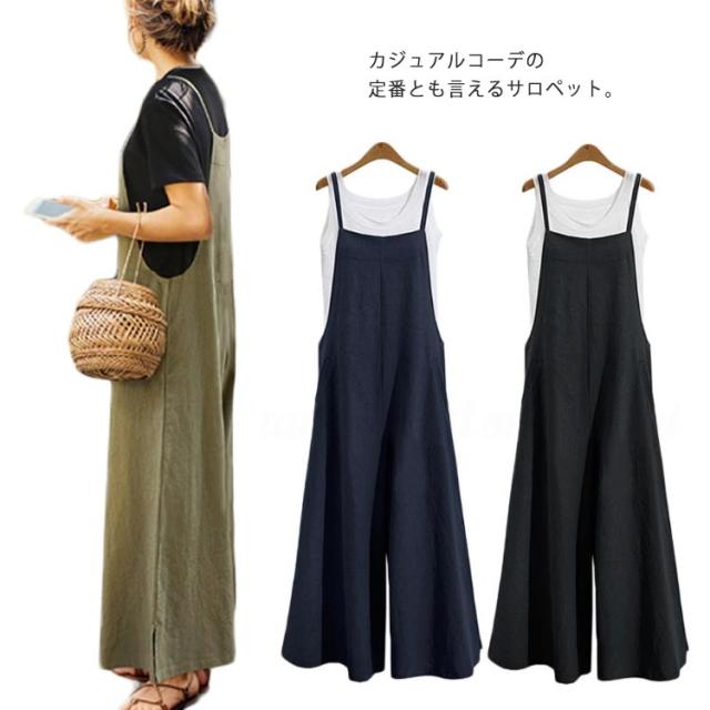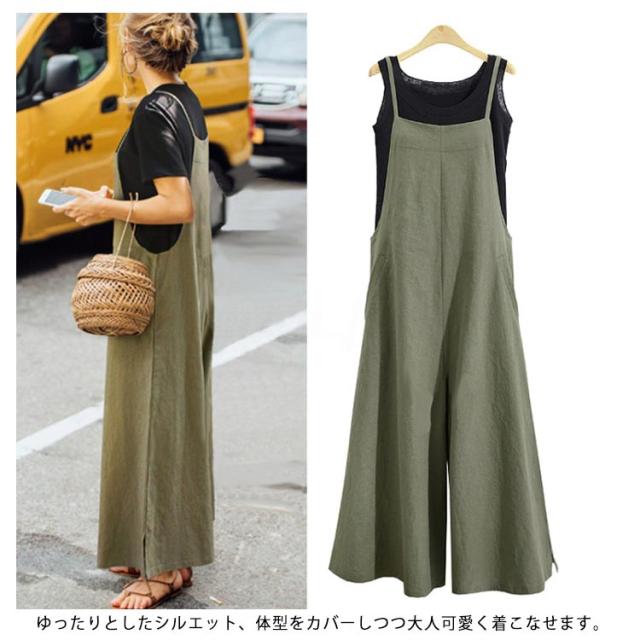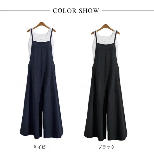 レディース サロペット オールインワン パンツ オーバーオール ゆったり 無地 体型カバー 大人 カジュアル ボトムス シンプル ワイドパンツ 春夏秋 ブラック カーキ ネイビー
