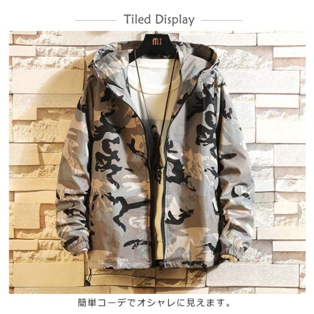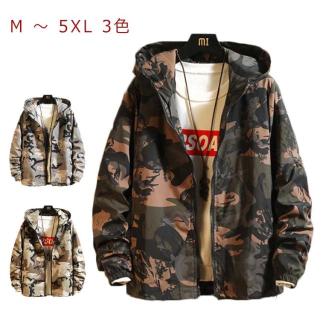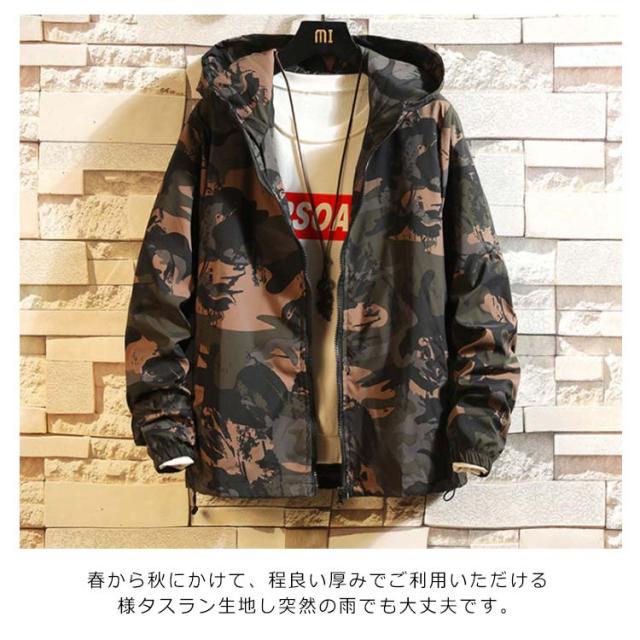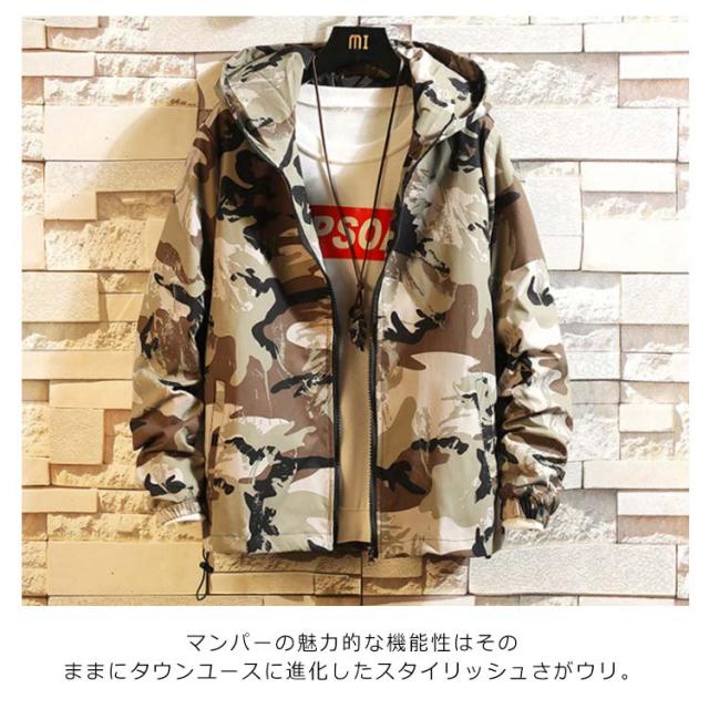 マウンテンパーカー メンズ ジャケット マンパー 大きいサイズ コーチジャケット ミリタリージャケット 春 春服 秋 秋服 シンプル カモフラ タスラン マウンテンジャケット 通勤 通学 アウター ウインドブレーカー 灰 迷彩 カモフラージュ