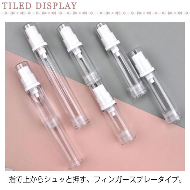 | 細くて携帯しやすく便利なスプレーボトル。 指で上からシュッと押す、フィンガースプレータイプ。 スプレータイプは霧吹きで、細かい霧が均一に噴霧されます。 ポンプタイプはローションや乳液などに対応可能です。 中身が漏れ出さないようにするための蓋が付いて漏れにくい。 アルコール、除菌洗浄剤など入れて、除菌、消毒などに役に立ちます。 | |