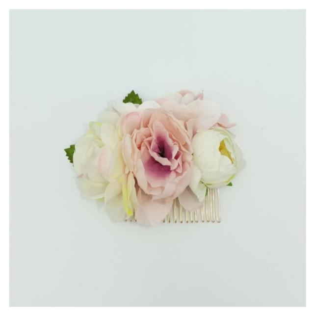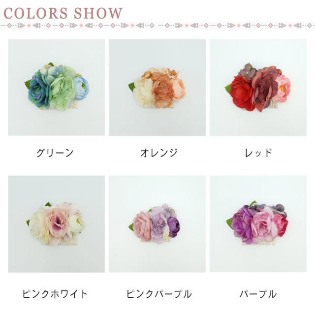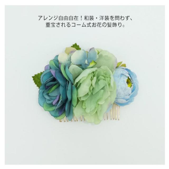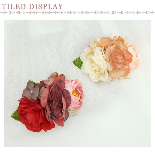 | そのままつけてもその他髪飾りと組み合わせても可愛く仕上がり◎ アレンジ自由自在!和装・洋装を問わず、重宝されるコーム式お花の髪飾り。 結婚式・成人式・発表会・卒業式・七五三・夏祭りの浴衣姿など一年通して活躍できるお花の髪飾りです。 | |