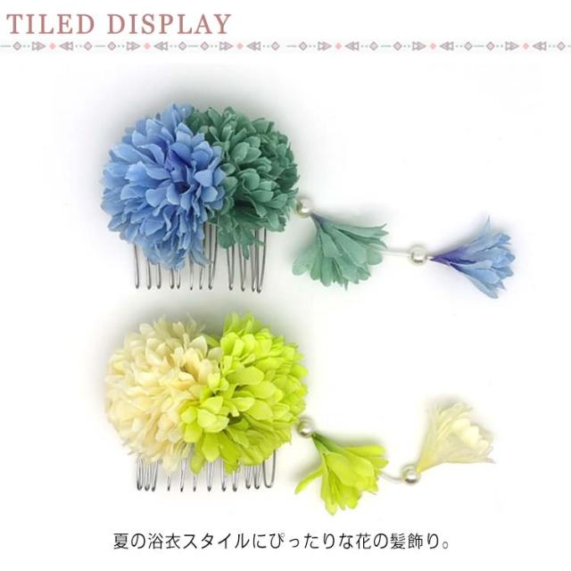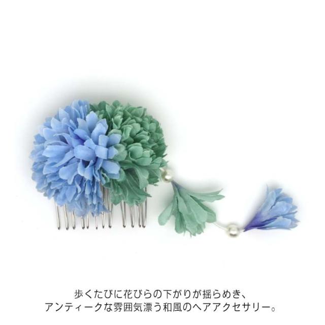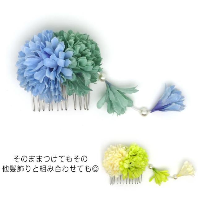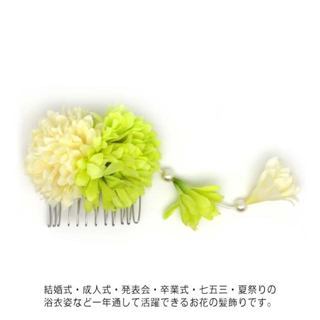 髪飾り 浴衣 成人式 振袖 卒業式 袴 着物 和装 お花の髪飾り ポンポンマム コーム パール 下がり 簪 七五三 お宮参り お正月 発表会 ウェディング 前撮り ドレス