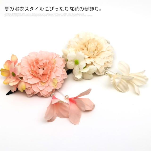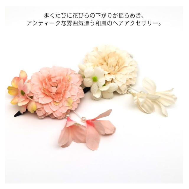 送料無料 クリップ 髪飾り 浴衣 成人式 七五三 結婚式 振袖 袴 着物 和装 帯 花の髪飾り ダリア 菊 パール 垂れ下がり 発表会 ウェディング 前撮り