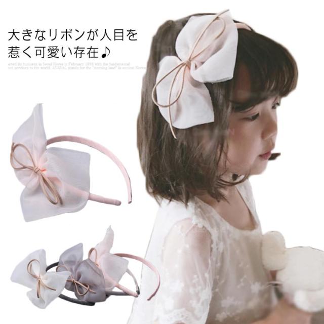 送料無料 子供用 カチューシャ 大きいリボン ヘアアクセサリー キッズ 女の子 チュール 髪飾り 発表会 結婚式 韓国ファッション お呼ばれ お姫様 七五三 入園式