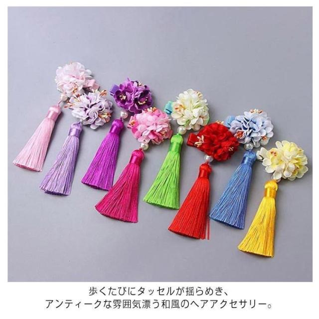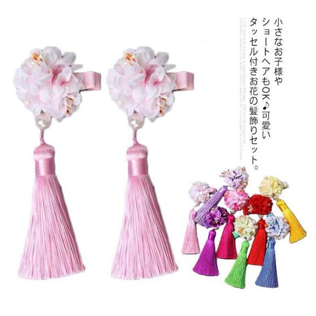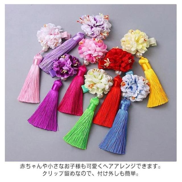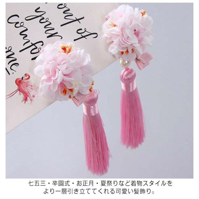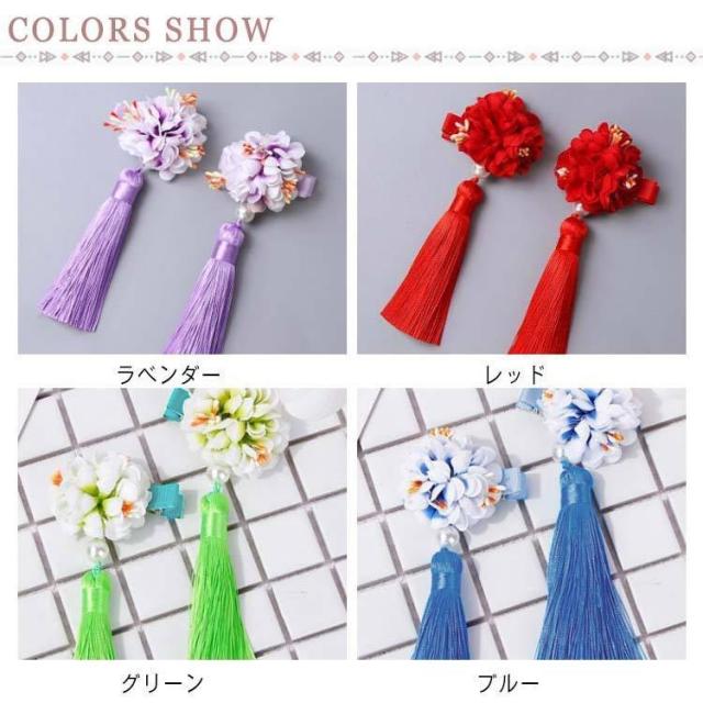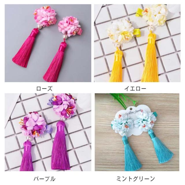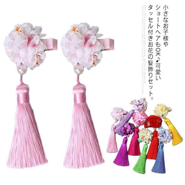 送料無料 七五三 髪飾り キッズ 花 ヘアアクセ ダリア タッセル クリップ留め 浴衣 結婚式 卒園式 卒業式 夏祭り お正月 お宮参り 三歳 五歳