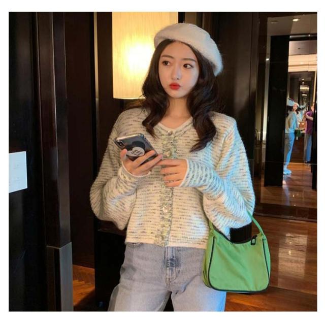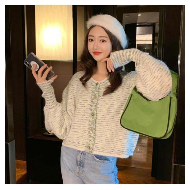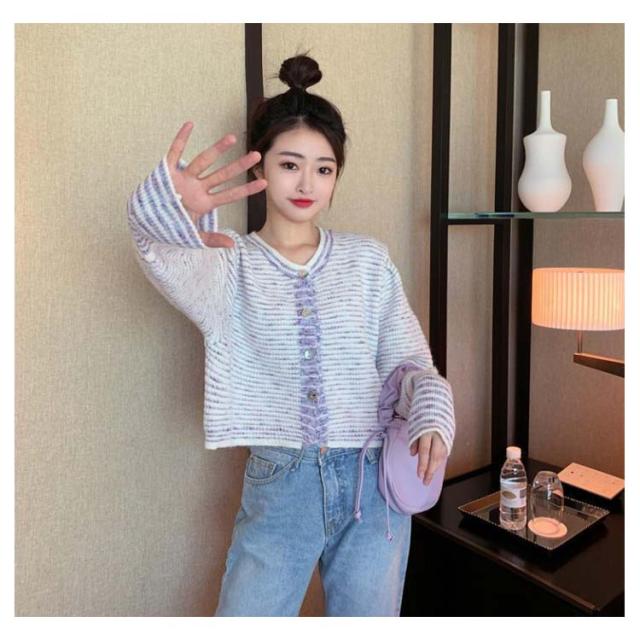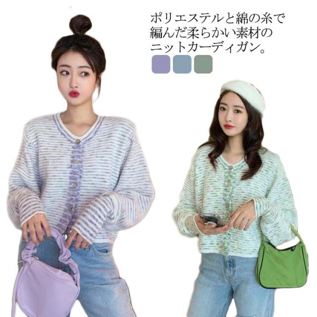 【送料無料】カーディガン レディース 長袖 羽織 ニットカーディガン トップス ショート丈カーディガン 前開きトップス ボタン ラウンドネック ビンテージ かわいい おしゃれ カジュアル 大人 淑女 秋 冬 ホワイト ブラック ブルー