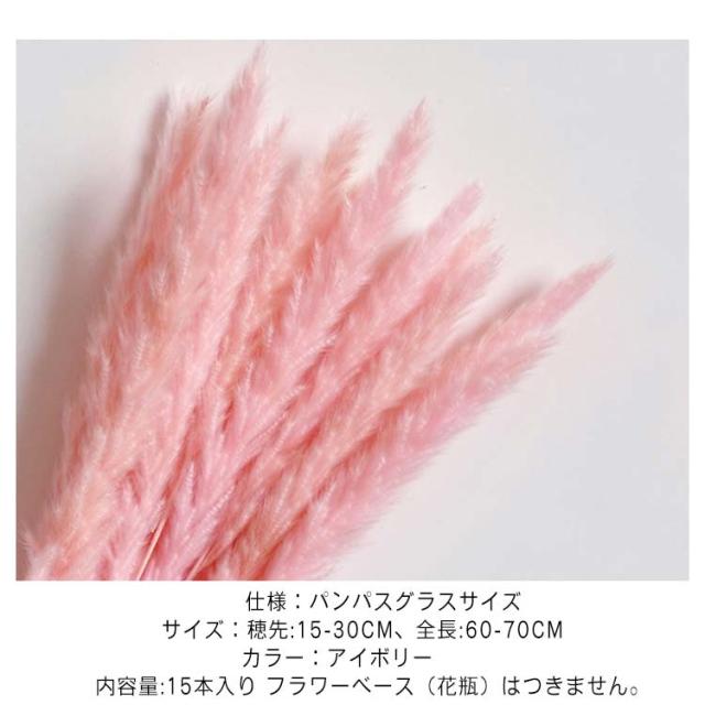 | 仕様:パンパスグラス サイズ:穂先:15-30CM、全長:60-70CM カラー:アイボリー 内容量:15本入り フラワーベース(花瓶)はつきません。 注意事項:天然素材のため、形、大きさ、状態にバラつきがございます。 入荷時期によっても、品質や色に差が出る品種も多くあります。 個体差や、季節によっての品質の差、写真と多少の違いなどがございますので、ご了承 | |