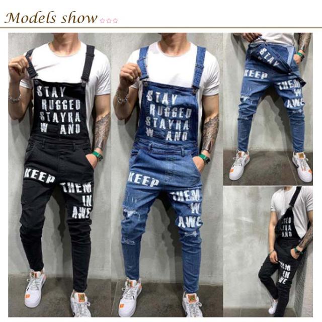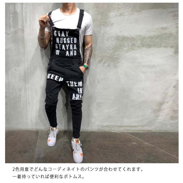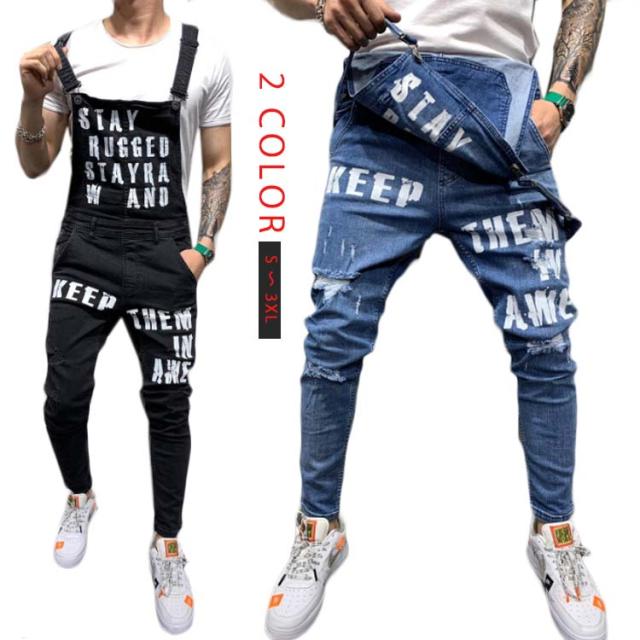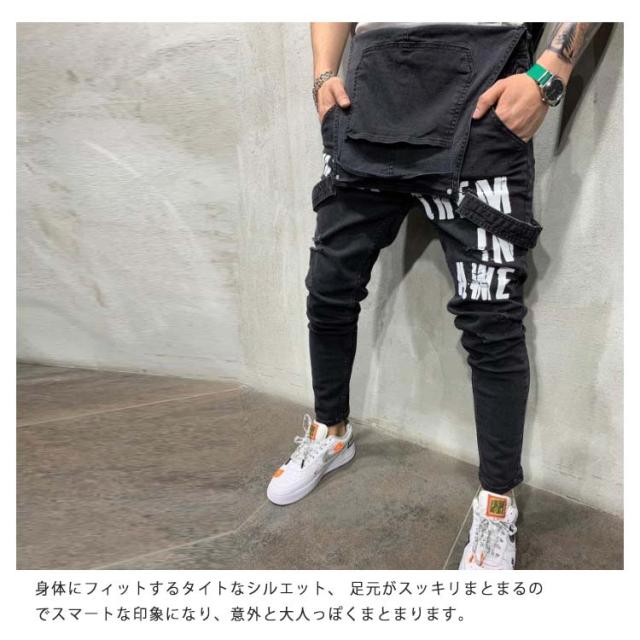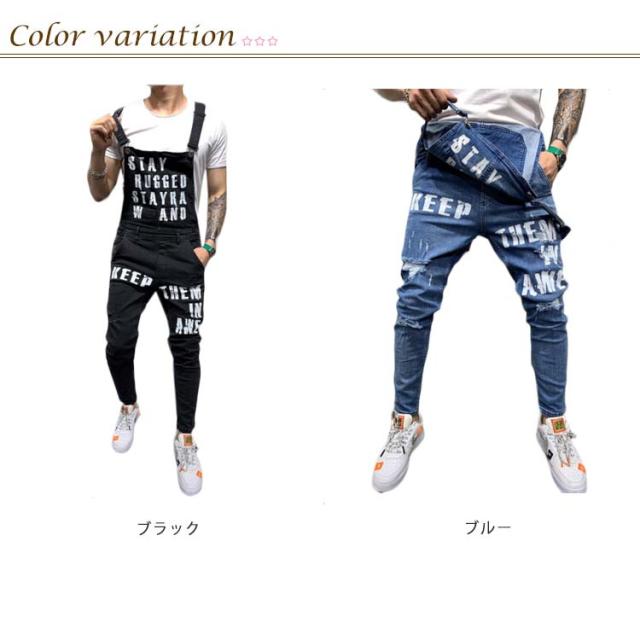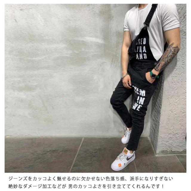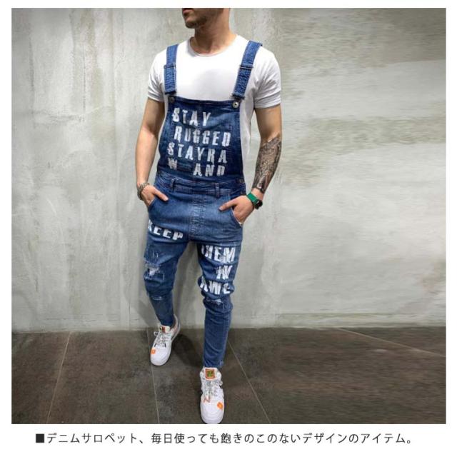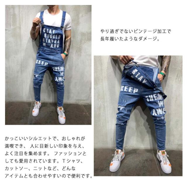 オーバーオール メンズ スキニー デニム ロングパンツ デニムオーバーオール お洒落 ダメージ プリント ジーンズ カーゴパンツ つなぎ スリムフィット 美脚 ストレッチ スキニー ジーンズ スキニーデニムパンツ デニム パンツ スリム