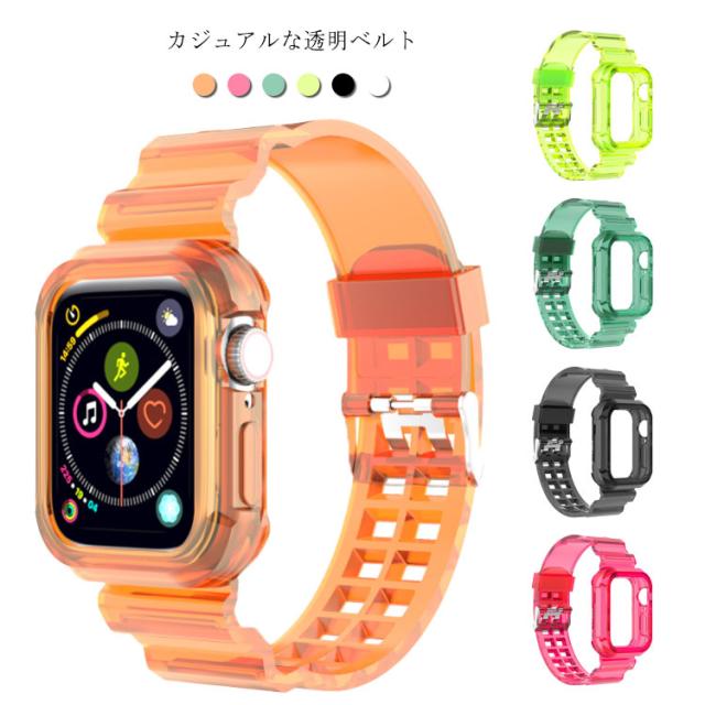 アップルウォッチ バンド 透明 クリア ベルト クリアバンド 送料無料 clear band 一体型 クリアケース 透明ケース レディース メンズ 44mm 42mm 40mm 38mm apple watch series 6 5 4 対応
