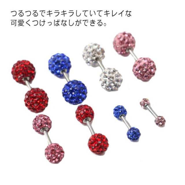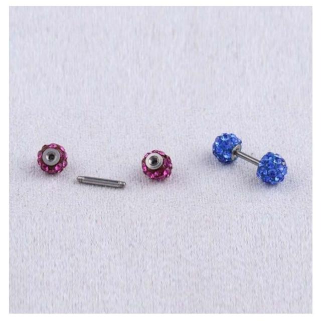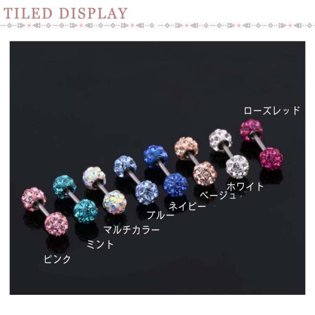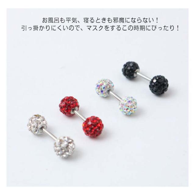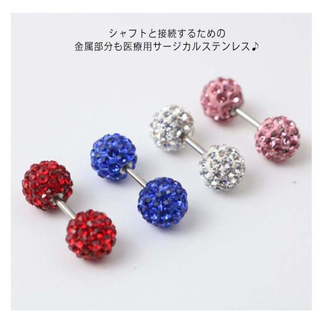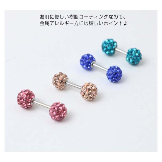 | つるつるでキラキラしていてキレイな可愛くつけっぱなしができる。 お風呂も平気、寝るときも邪魔にならない!引っ掛かりにくいので、マスクをするこの時期にぴったり! お肌に優しい樹脂コーティングなので、金属アレルギー方には嬉しいポイント♪ シャフトと接続するための金属部分も医療用サージカルステンレス♪ | |
