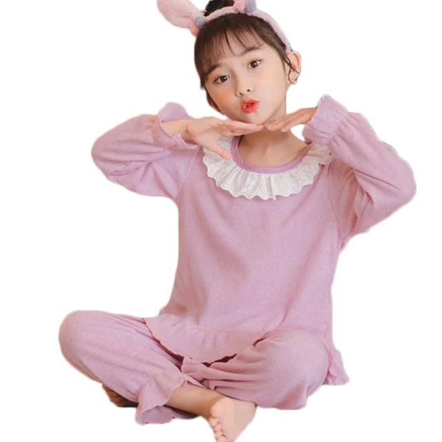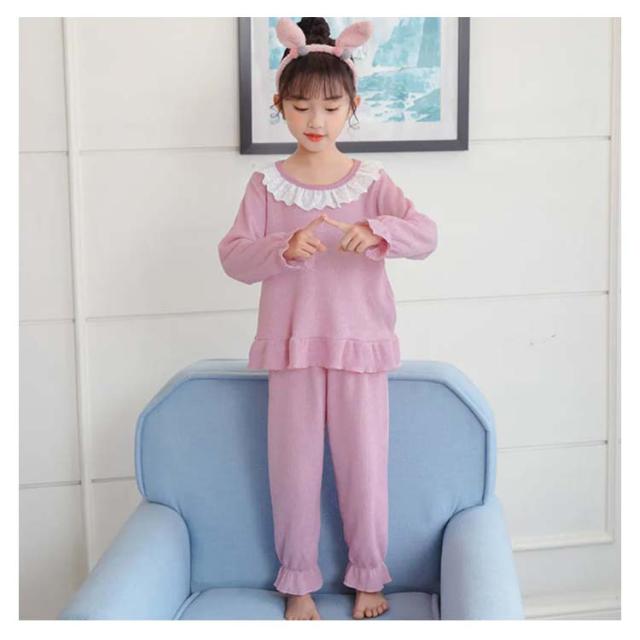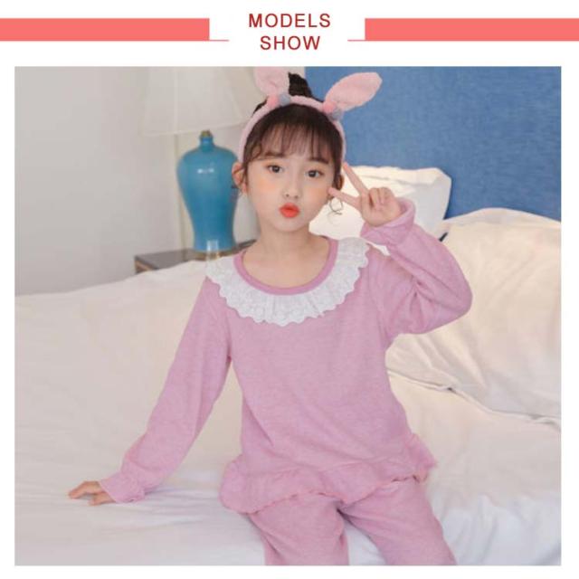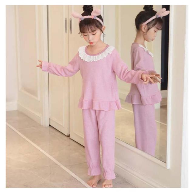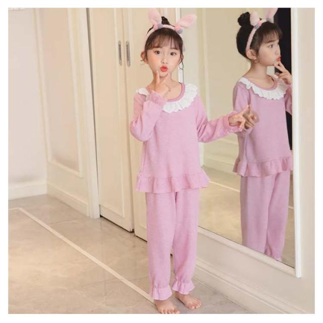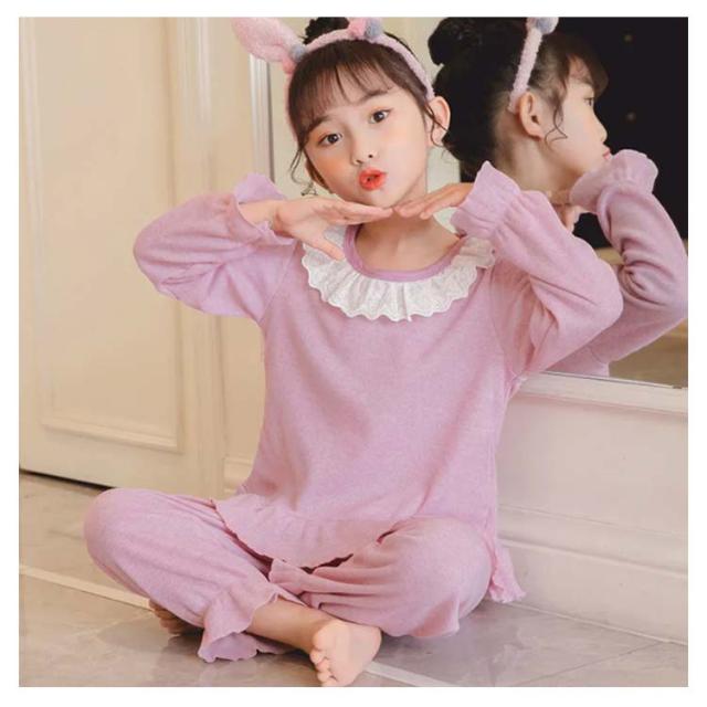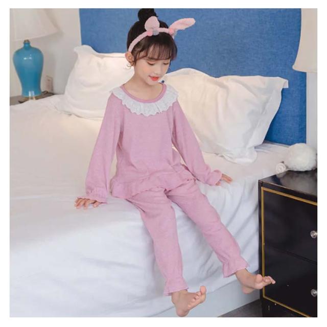 レースパジャマ キッズ 女の子 部屋着 寝間着 春秋 ベビー 上下セット 姫系 パジャマ 送料無料 女の子 フリルパジャマ 丸襟 コットン 寝巻き 上下セット ルームウェア ナイトウェア トップス セットアップ