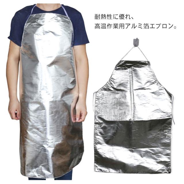 | 耐熱性に優れ、高温作業用アルミ箔エプロン。 着易く脱ぎやすいので忙しい作業前に便利です。 防護効果に優れていて、動きやすい膝丈です。 水と油をはじく性質で、丸洗いもできますので常に清潔に御使用いただけます。 | |