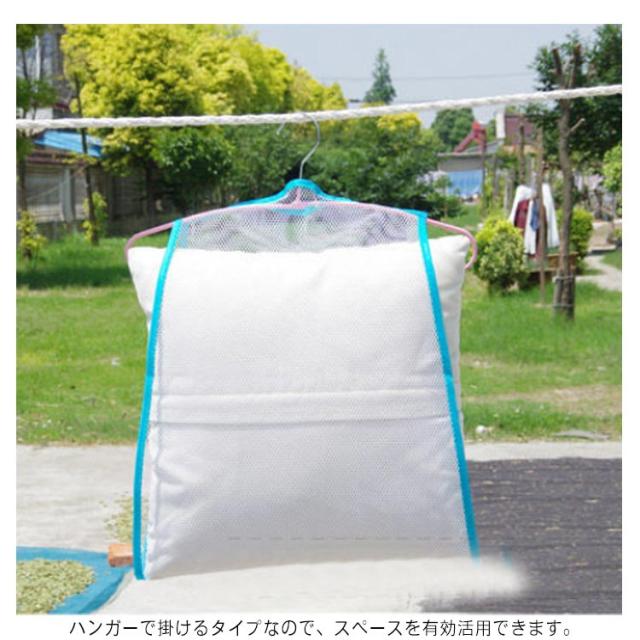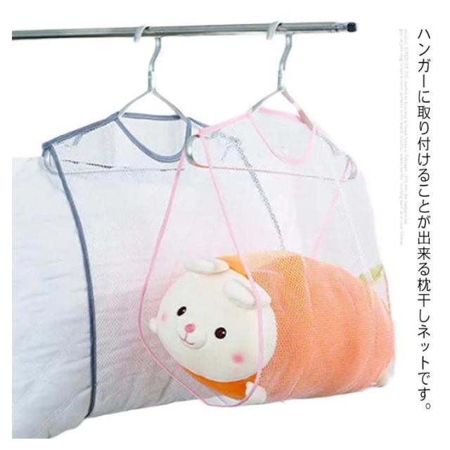 枕干しネット 2枚セット 物干しネット 取り付けタイプ メッシュ まくら クッション ぬいぐるみ 座布団 靴 洗濯 乾燥 ハンガー 吊り下げ式 省スペース 通気性 軽量 47×57cm 送料無料
